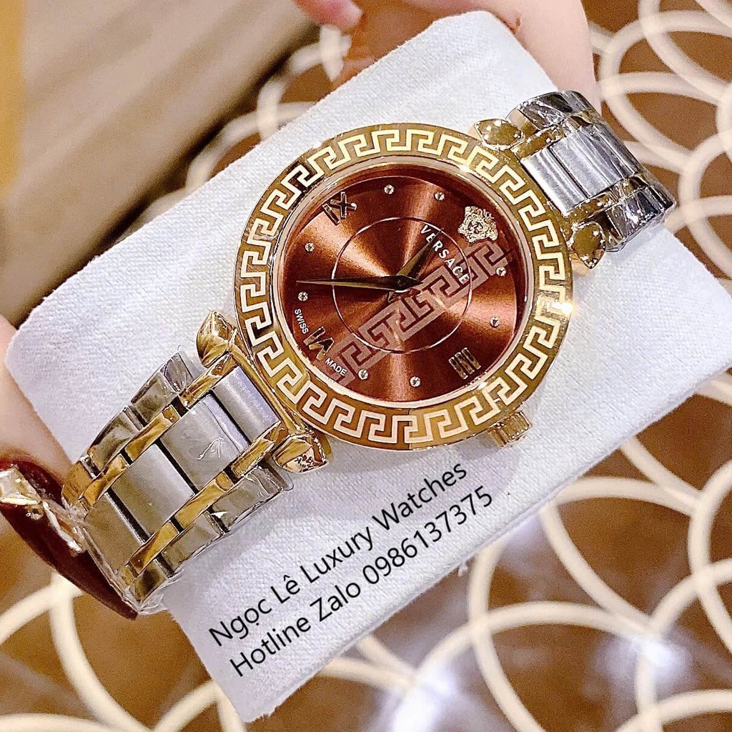 Đồng Hồ Cao Cấp Nữ - Đồng Hồ Versace Daphnis Dây Kim Loại Demi Vàng Mặt Nâu Size 35mm