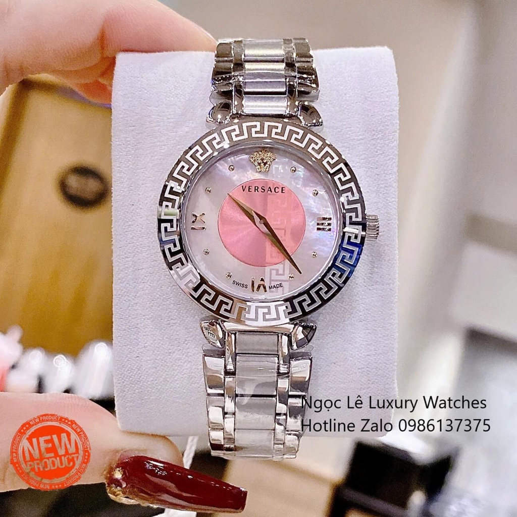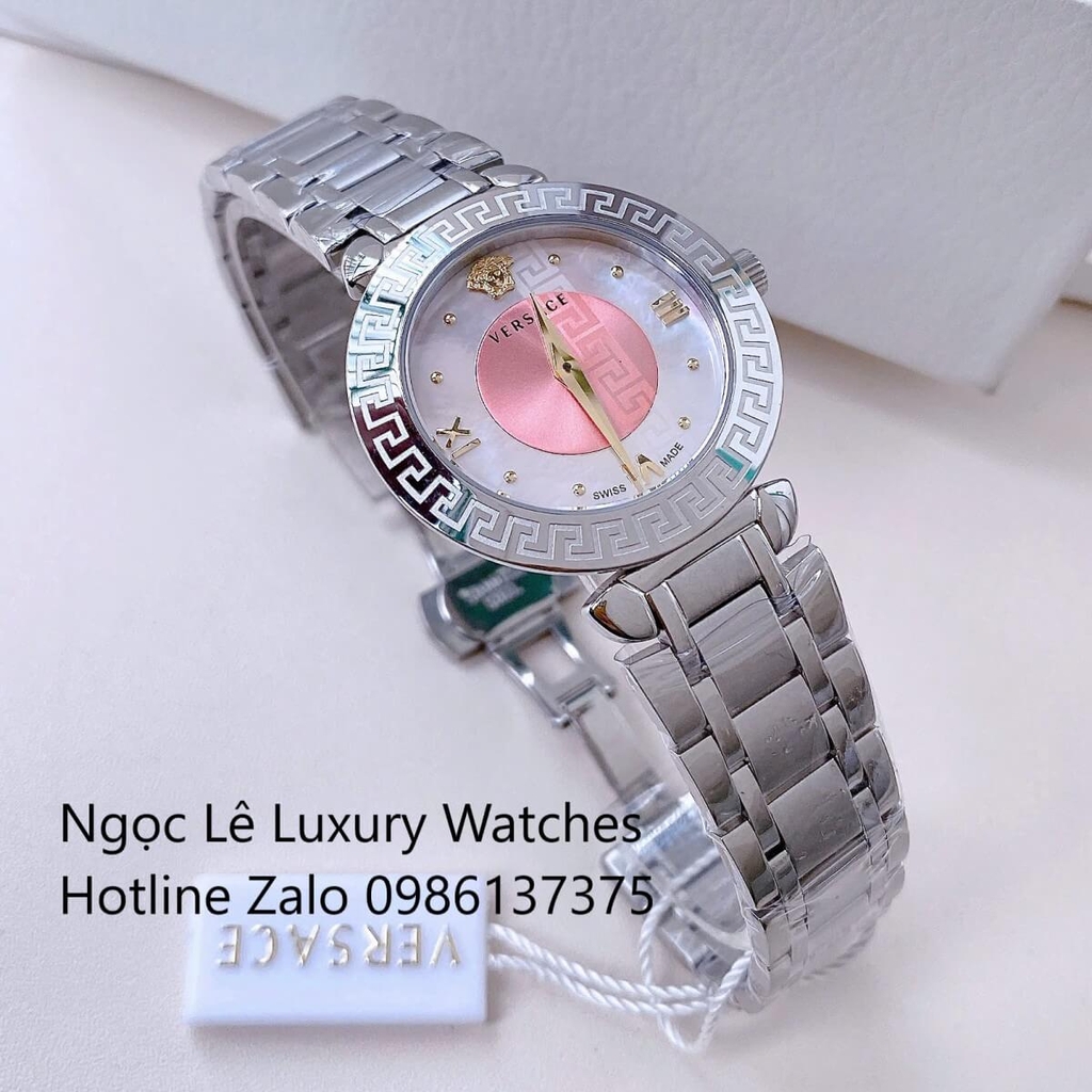 Đồng Hồ Cao Cấp Nữ - Đồng Hồ Versace Daphnis Dây Kim Loại Màu Bạc Mặt Hồng Size 35mm