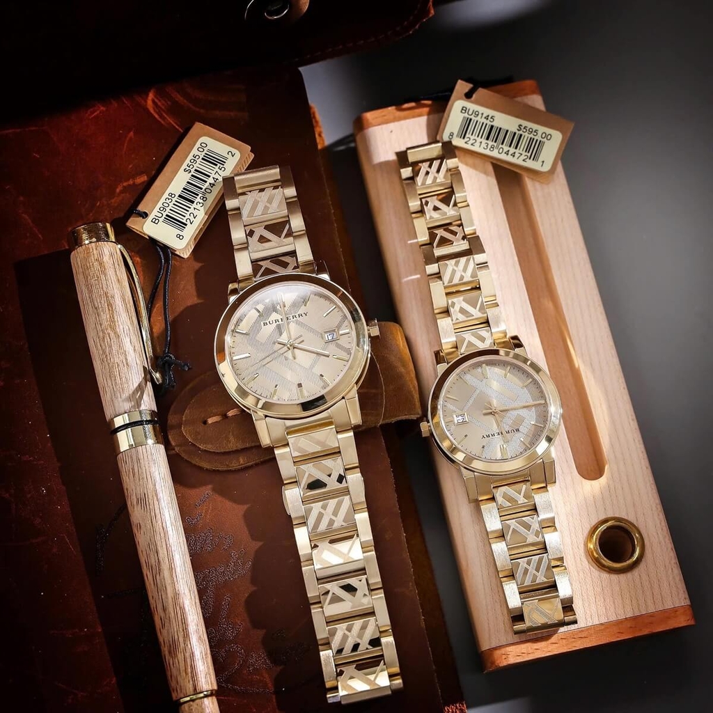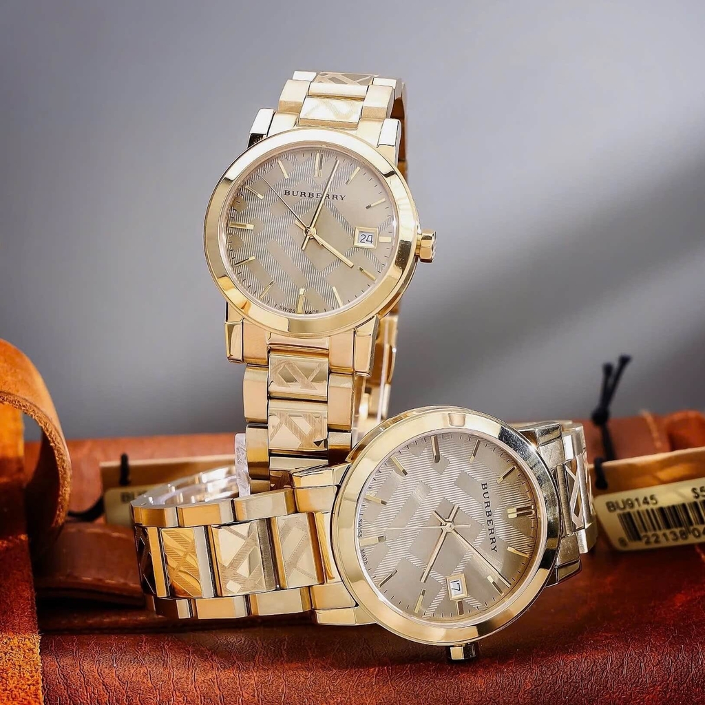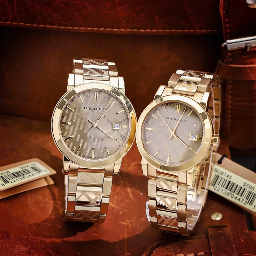 - Đồng Hồ Cặp Burberry The City BU9038 BU9145 Dây Kim Loại Màu Vàng Gold
