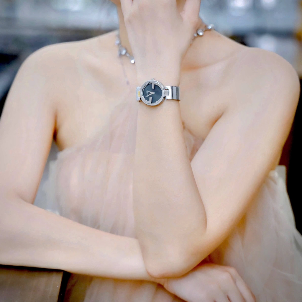 Đồng hồ cặp Gucci cao cấp dây bạc mặt đen