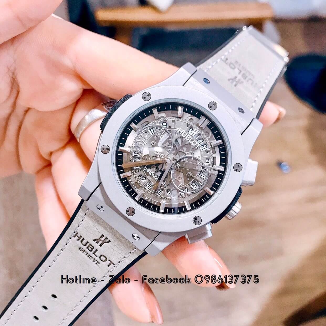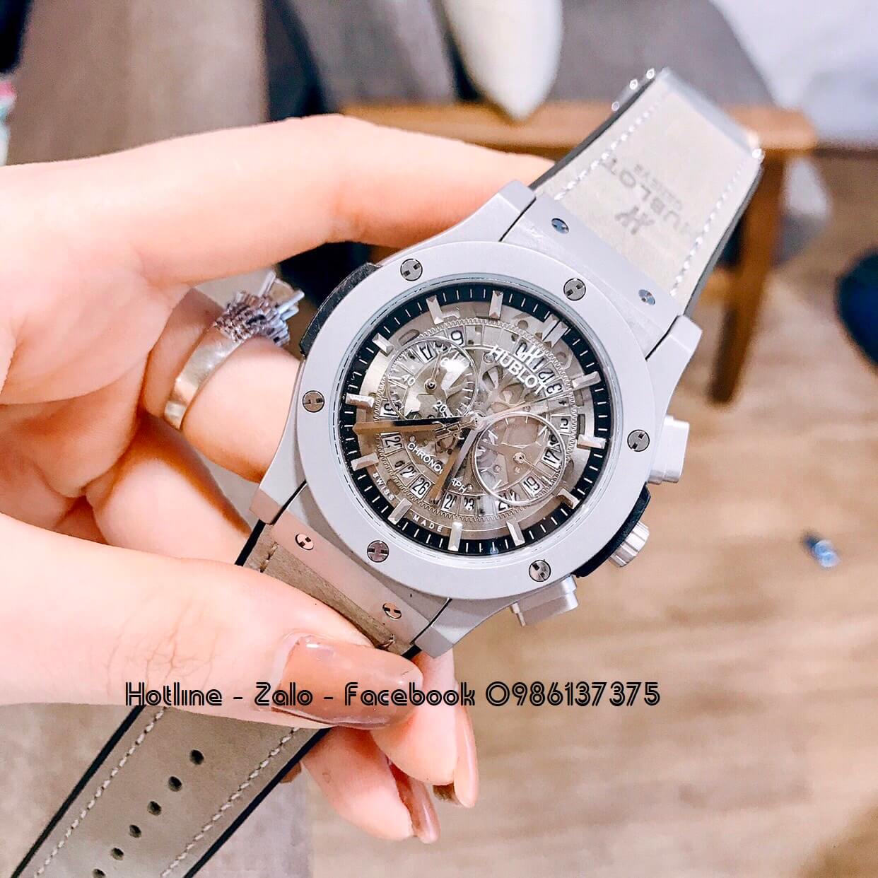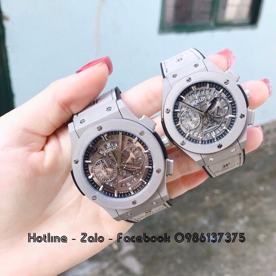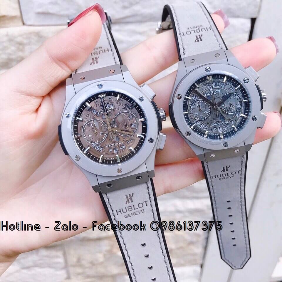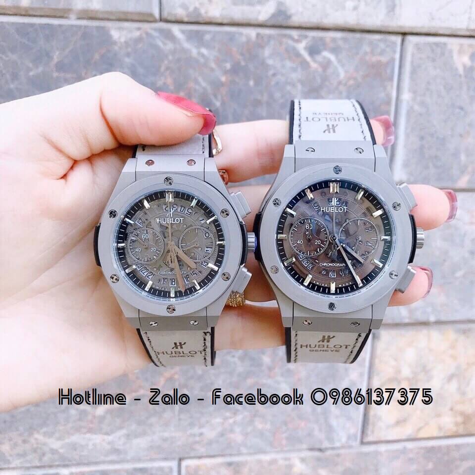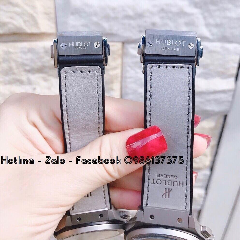 Đồng Hồ Cặp Hublot Dây Da Silicon Xám 42mm - 37mm (Silver)