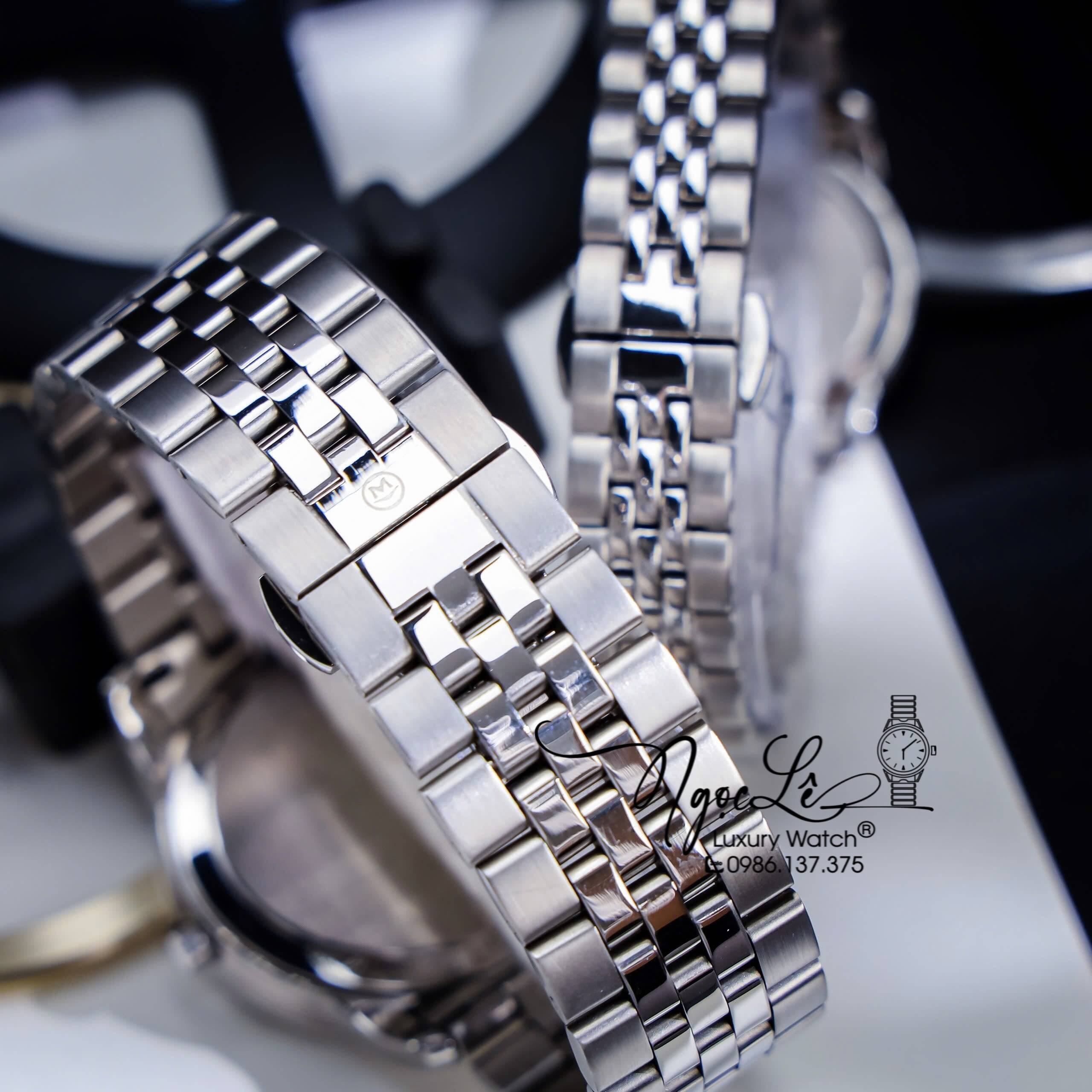 Đồng Hồ Cặp Movado Museum Cao Cấp Dây Kim Loại Bạc Mặt Đen 40mm - 28mm