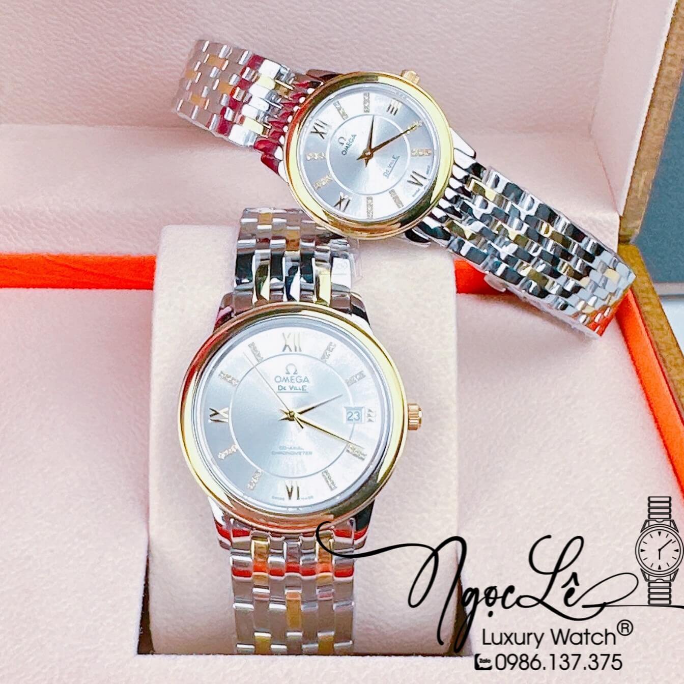 - Đồng Hồ Cặp Omega Deville Máy Pin Thụy Sỹ Dây Kim Loại Màu Demi 39mm-30mm