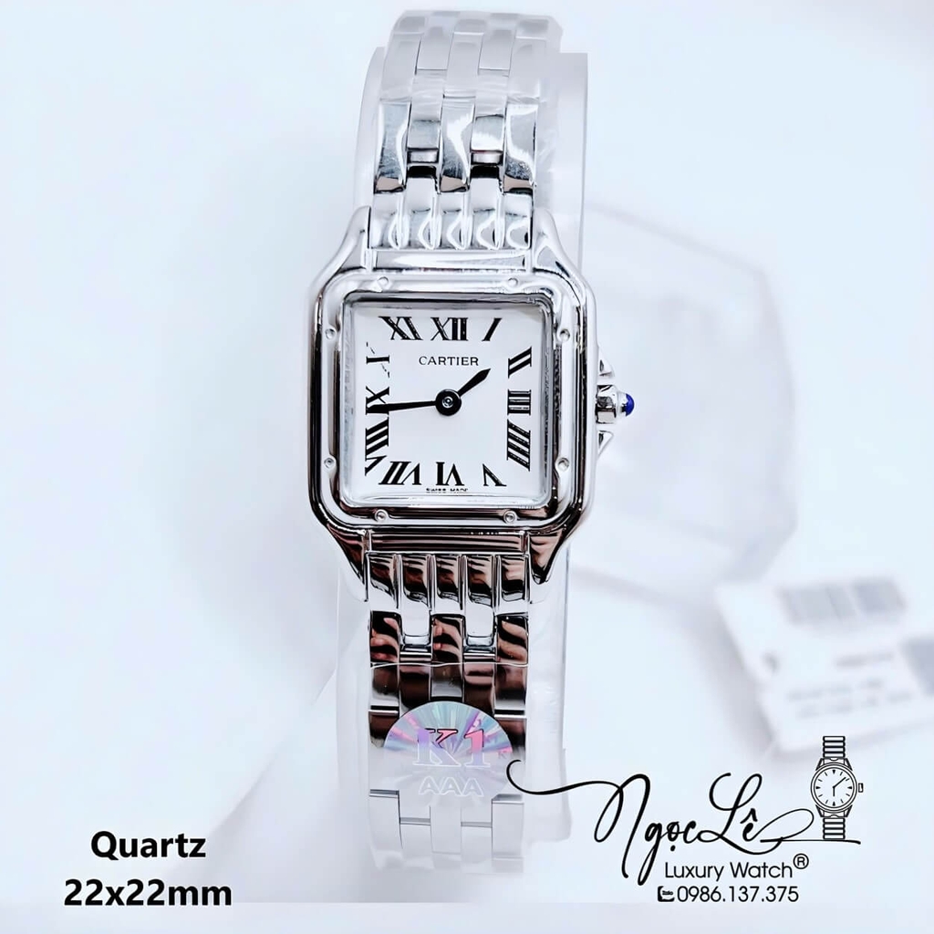Đồng Hồ Cartier Nữ Mặt Vuông Dây Kim Loại Bạc Mặt Trắng Size 22x22mm - Niềng Trơn
