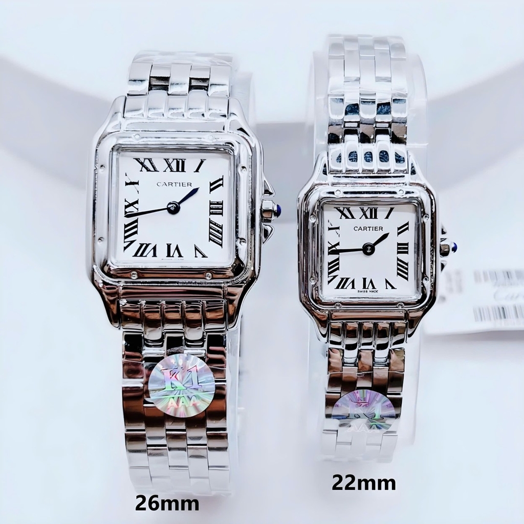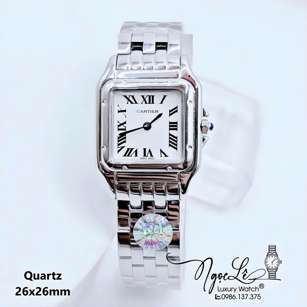 - Đồng hồ Cartier nữ mặt vuông số la mã máy Pin Thụy Sĩ siêu cấp niềng trơn