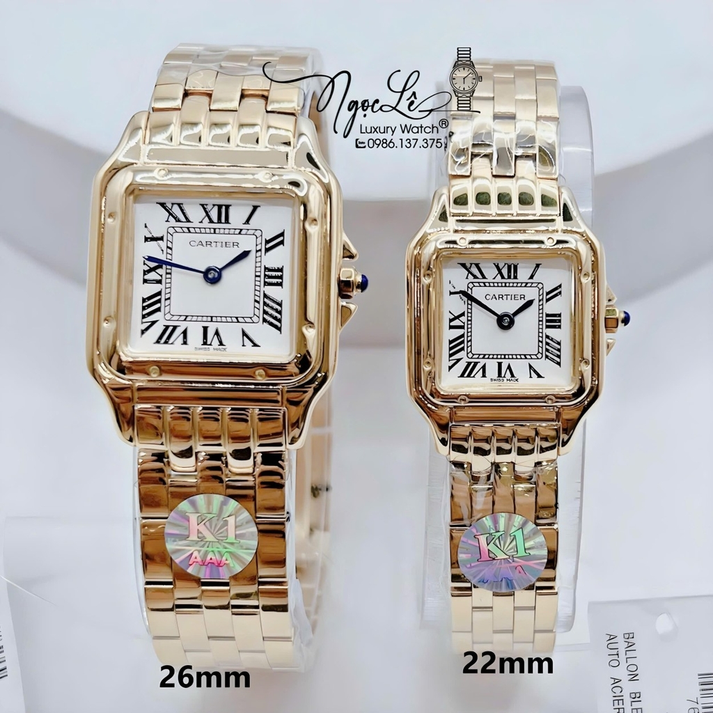 - Đồng hồ Cartier nữ mặt vuông số la mã máy Pin Thụy Sĩ siêu cấp niềng trơn