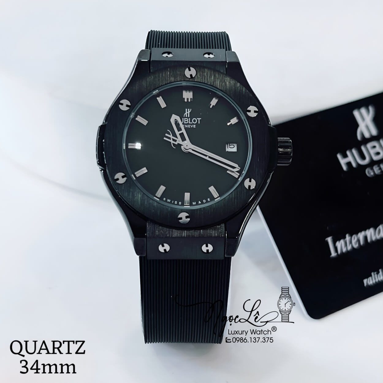 Đồng Hồ Hublot Classic Fusion Nữ Dây Silicon Đen Niềng Trơn Vỏ Thép Đen Size 34mm
