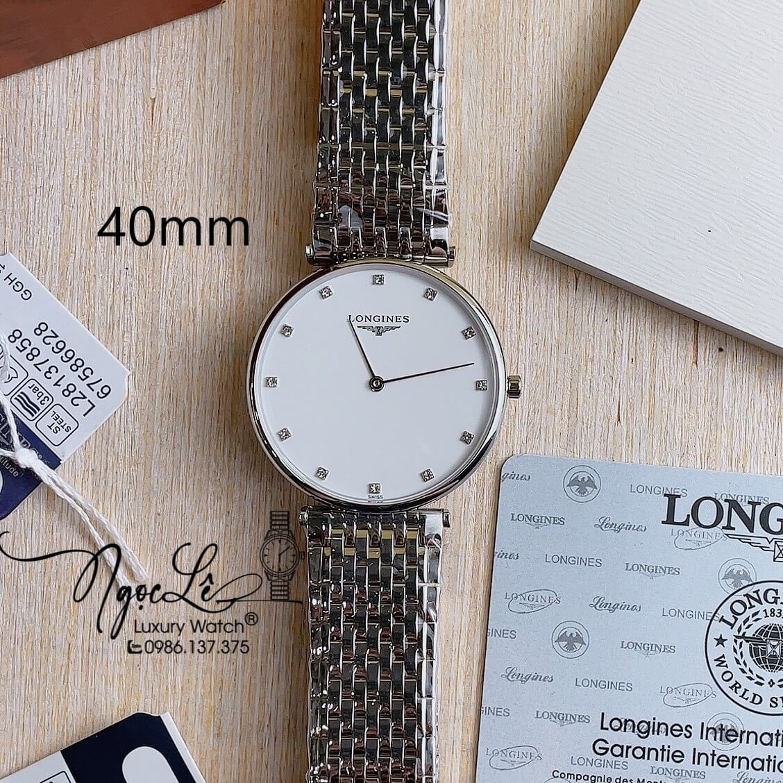 - Đồng Hồ Longines Nam Dây Kim Loại Bạc Mặt Trắng Đính Hột Máy Pin Thụy Sĩ Size 40mm