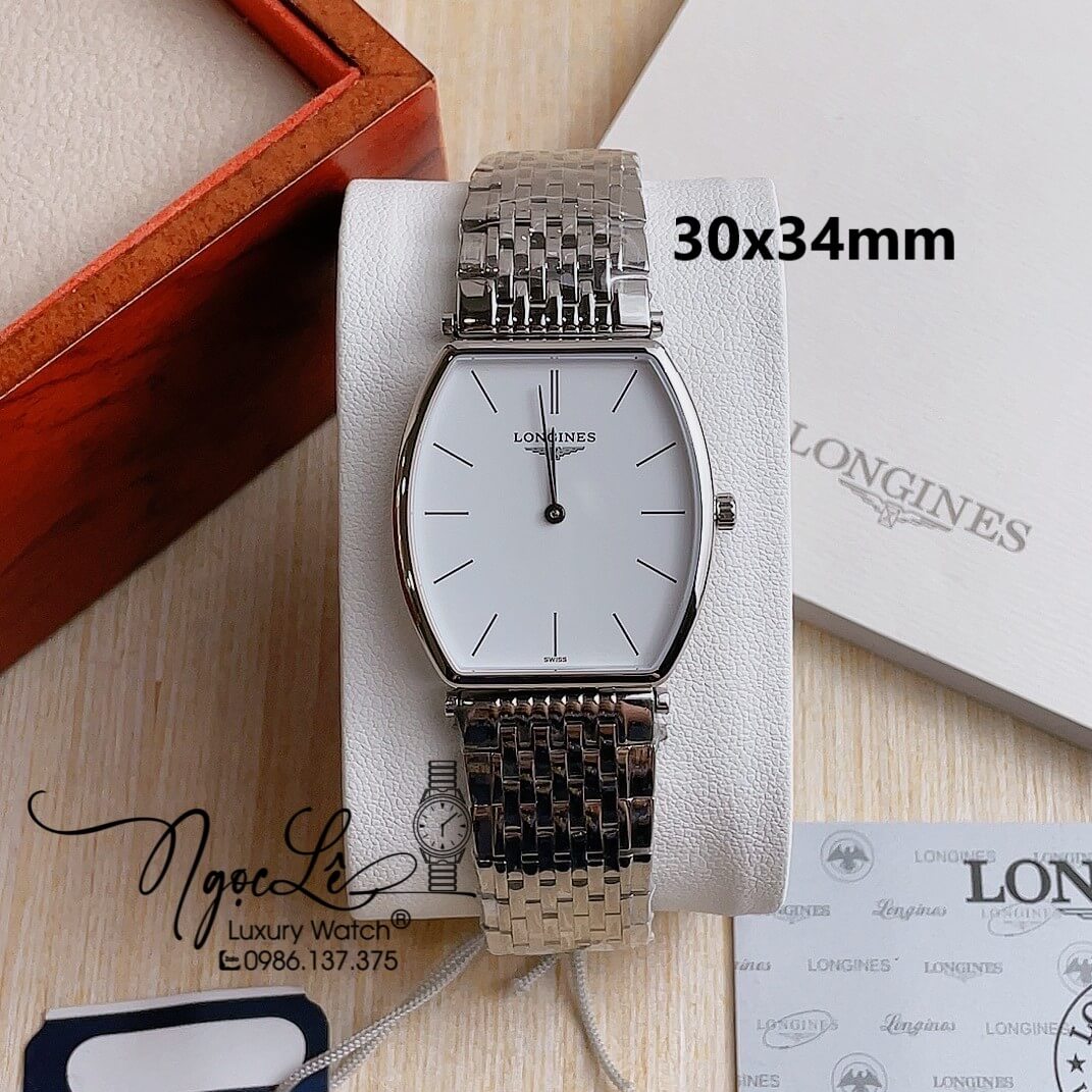 - Đồng Hồ Longines Nam Dây Bạc Mặt Trắng Chia Vạch Máy Pin Thụy Sĩ Size 30x34mm