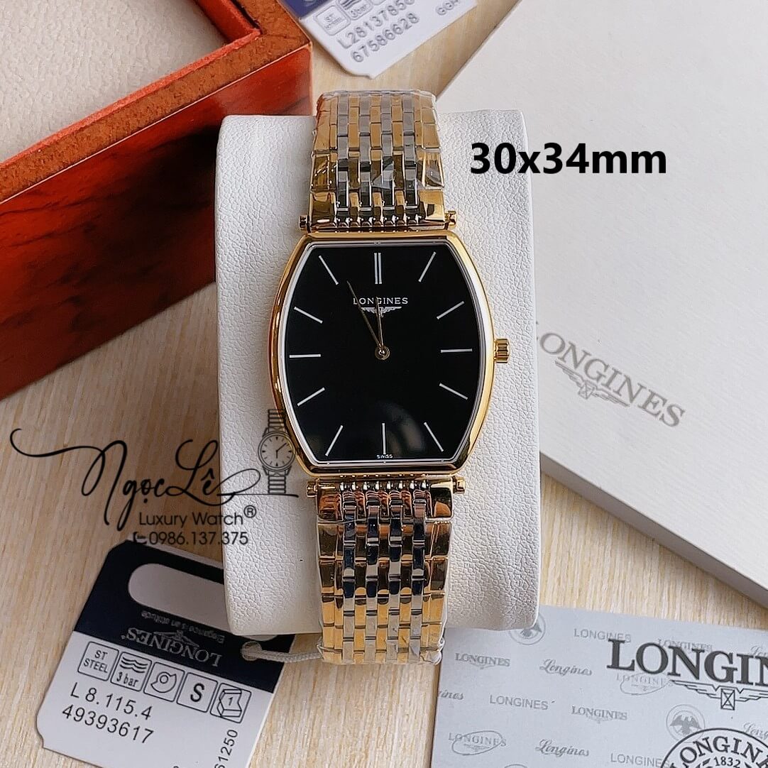 - Đồng Hồ Longines Nam Dây Kim Loại Demi Vàng Mặt Đen Máy Pin Thụy Sĩ Size 30x34mm
