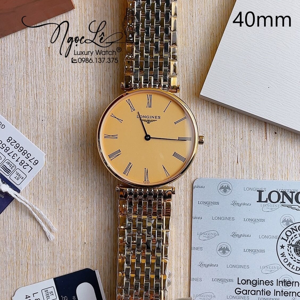 - Đồng Hồ Longines Nam Dây Kim Loại Demi Vàng Mặt Vàng Số La Mã Máy Pin Thụy Sĩ 40mm