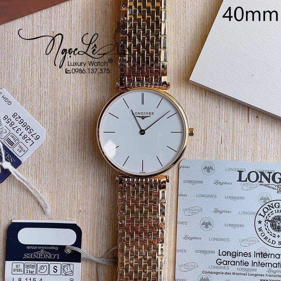 - Đồng Hồ Longines Nam Dây Kim Loại Vàng Mặt Trắng Chia Vạch Máy Pin Thụy Sĩ 40mm