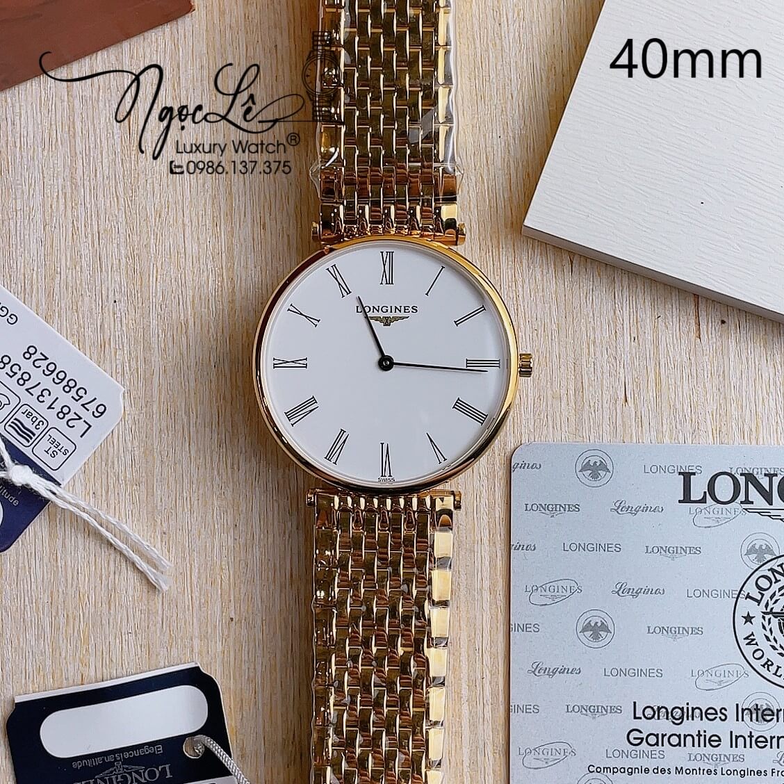 - Đồng Hồ Longines Nam Dây Kim Loại Vàng Mặt Trắng Số La Mã Máy Pin Thụy Sĩ 40mm