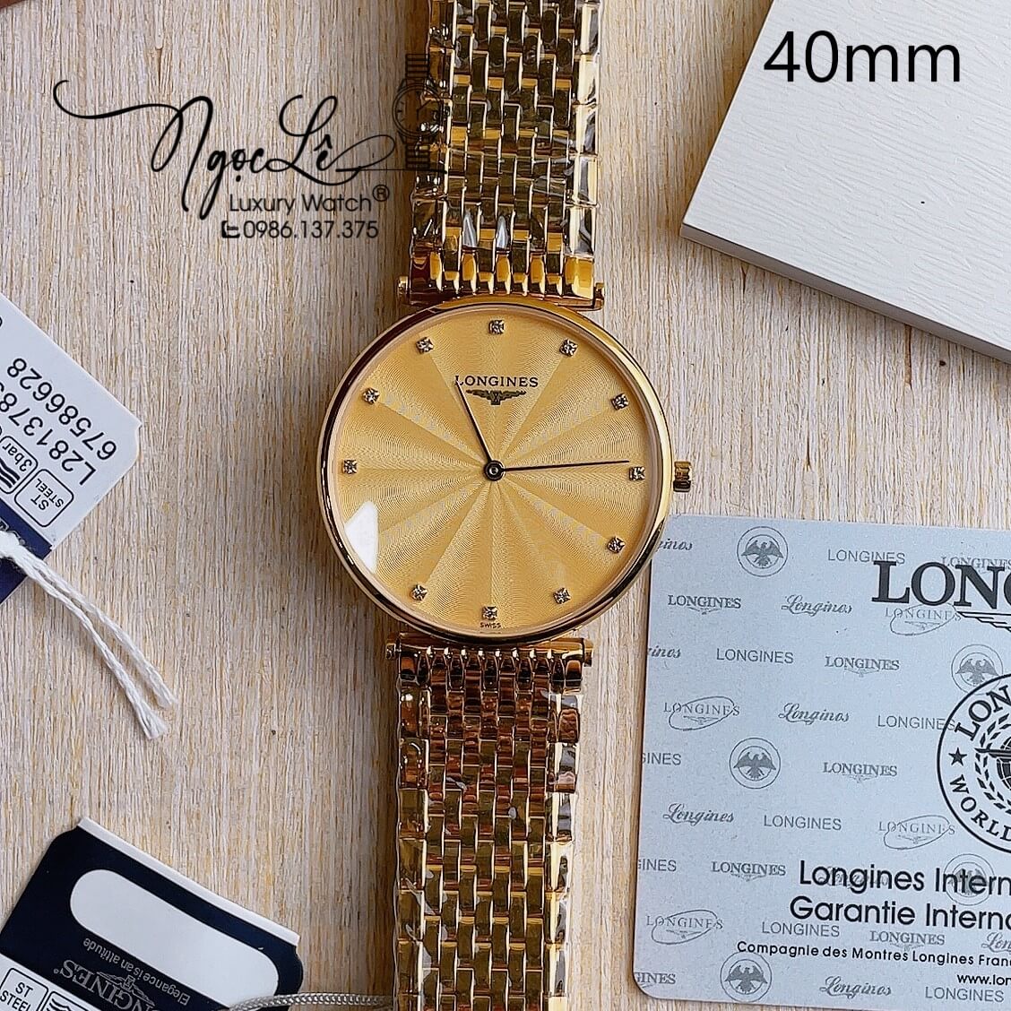 - Đồng Hồ Longines Nam Dây Kim Loại Vàng Mặt Vàng Tia Đính Hột Máy Pin Thụy Sĩ 40mm
