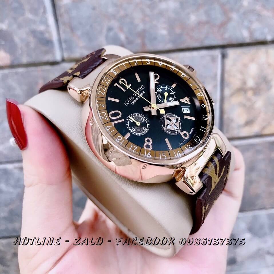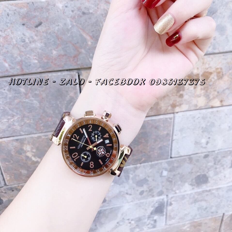 Đồng Hồ Louis Vuitton Nữ Dây Da Nâu 6 Kim 38mm