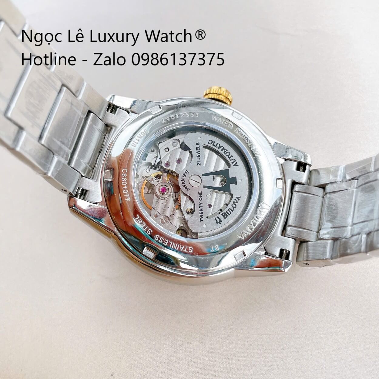 Phần mặt trắng lộ cơ trước sau cho phép chiêm ngưỡng trọn vẹn chuyển động nhịp nhàng của bộ máy bên trong – biểu tượng cho kỹ thuật chế tác tinh xảo và đẳng cấp của Bulova.