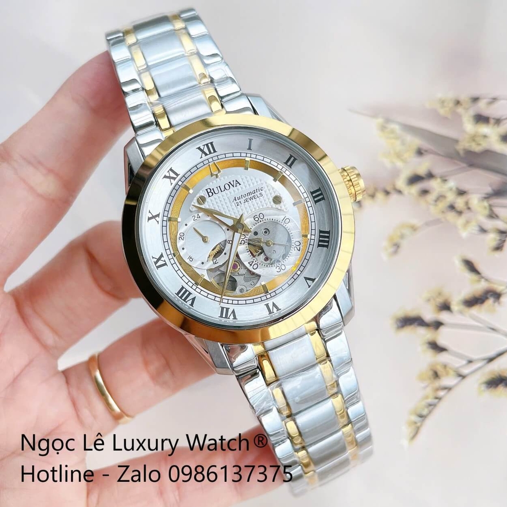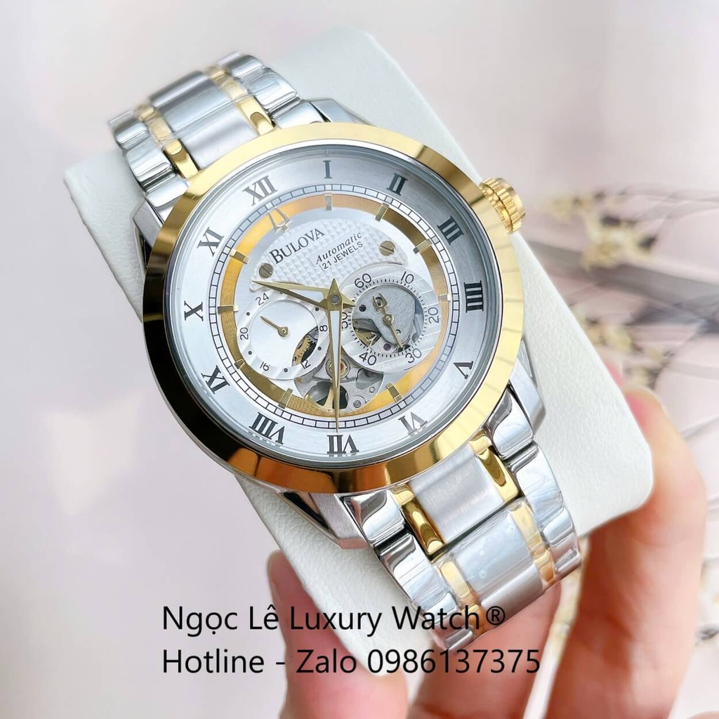 Đồng Hồ Nam Bulova 96A118 Automatic Dây Kim Loại Demi Vàng – Mặt Trắng Sang Trọng Size 42mm