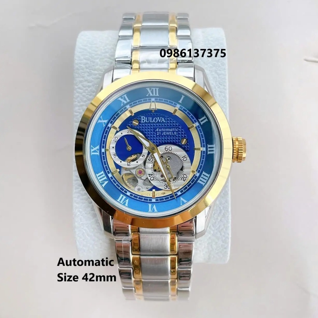 Đồng Hồ Nam Bulova 96A118 Automatic Dây Kim Loại Demi Vàng – Mặt Xanh Dương 42mm