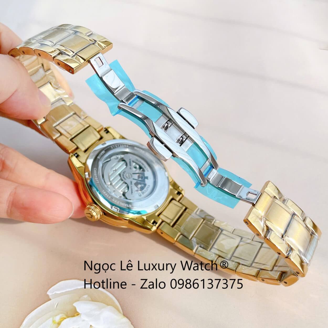 Vỏ & dây: Thép không gỉ 316L cao cấp mạ vàng PVD bền màu, chống ăn mòn.
