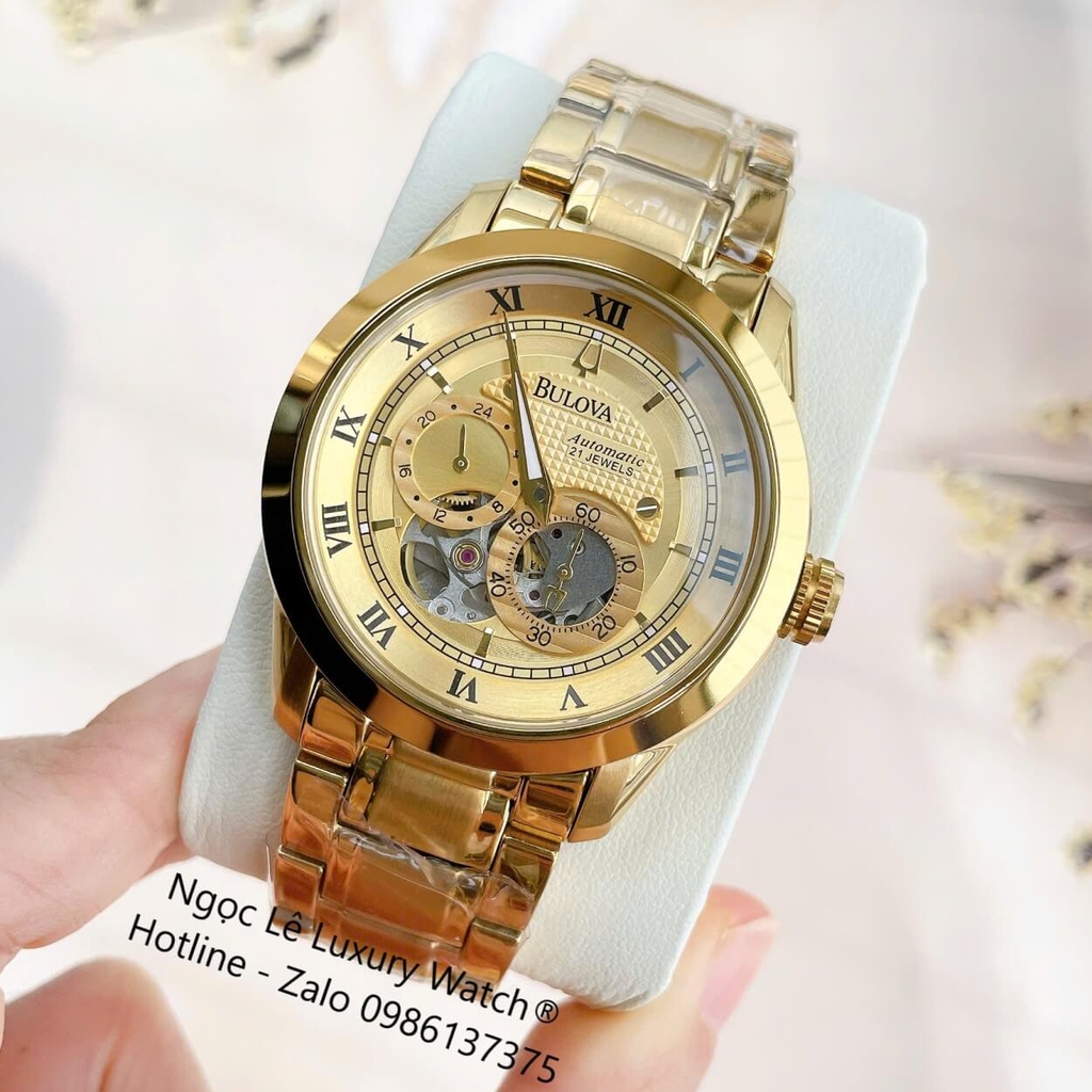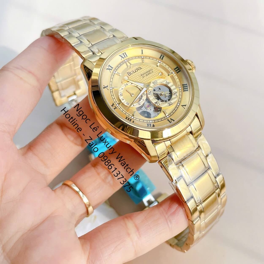 ĐỒNG HỒ NAM BULOVA 96A118 TỰ ĐỘNG DÂY KIM LOẠI VÀNG MẶT VÀNG SIZE 42MM (GOLD)