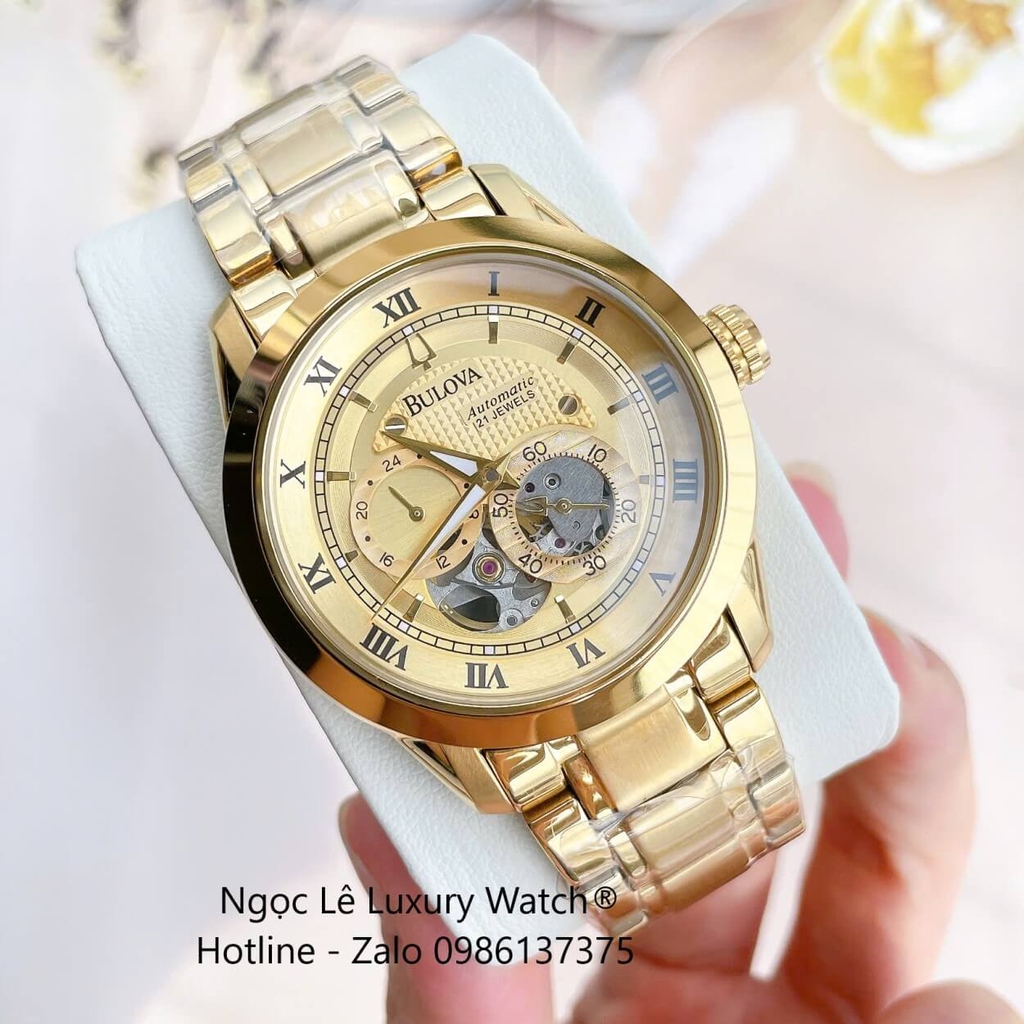 Đồng hồ Bulova tự động màu vàng dành cho nam, size 42mm, Bulova automatic