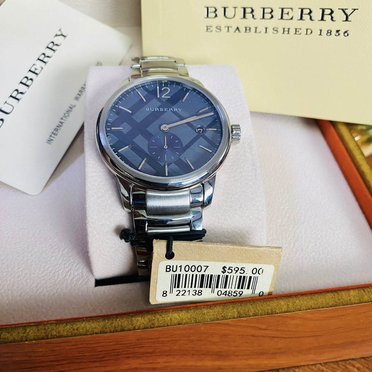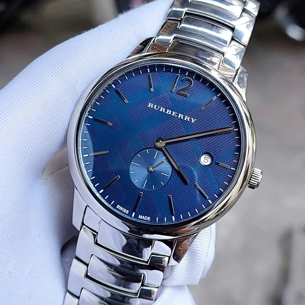 Đồng Hồ Nam Burberry BU10007 Máy Thụy Sĩ Size 40mm - Màu Bạc Mặt Xanh