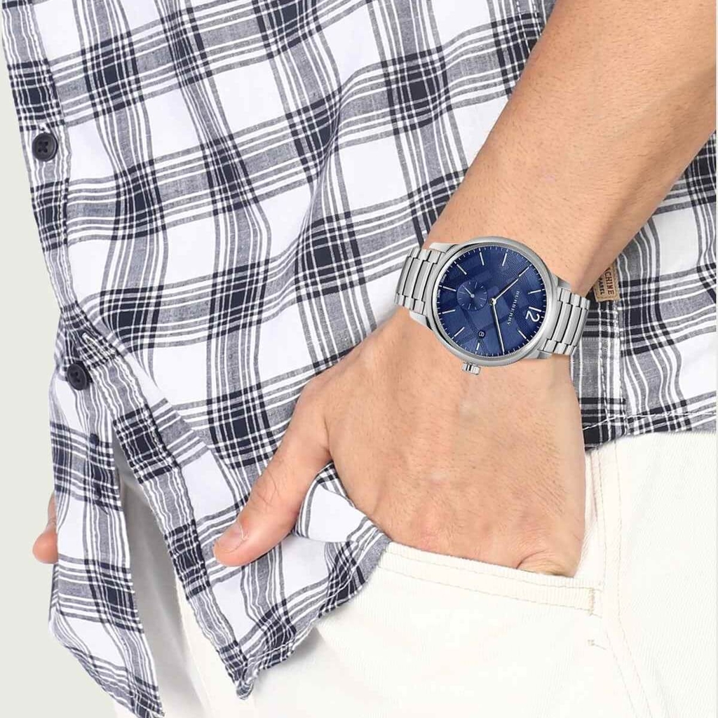 Mẫu đồng hồ Burberry BU10007 mang phong cách cổ điển pha lẫn hiện đại – đặc trưng của thương hiệu thời trang danh tiếng đến từ Anh quốc. Thiết kế dây kim loại bạc kết hợp mặt xanh navy trầm sang trọng, tạo nên vẻ ngoài tinh tế, lịch lãm và đầy sức hút cho phái mạnh.