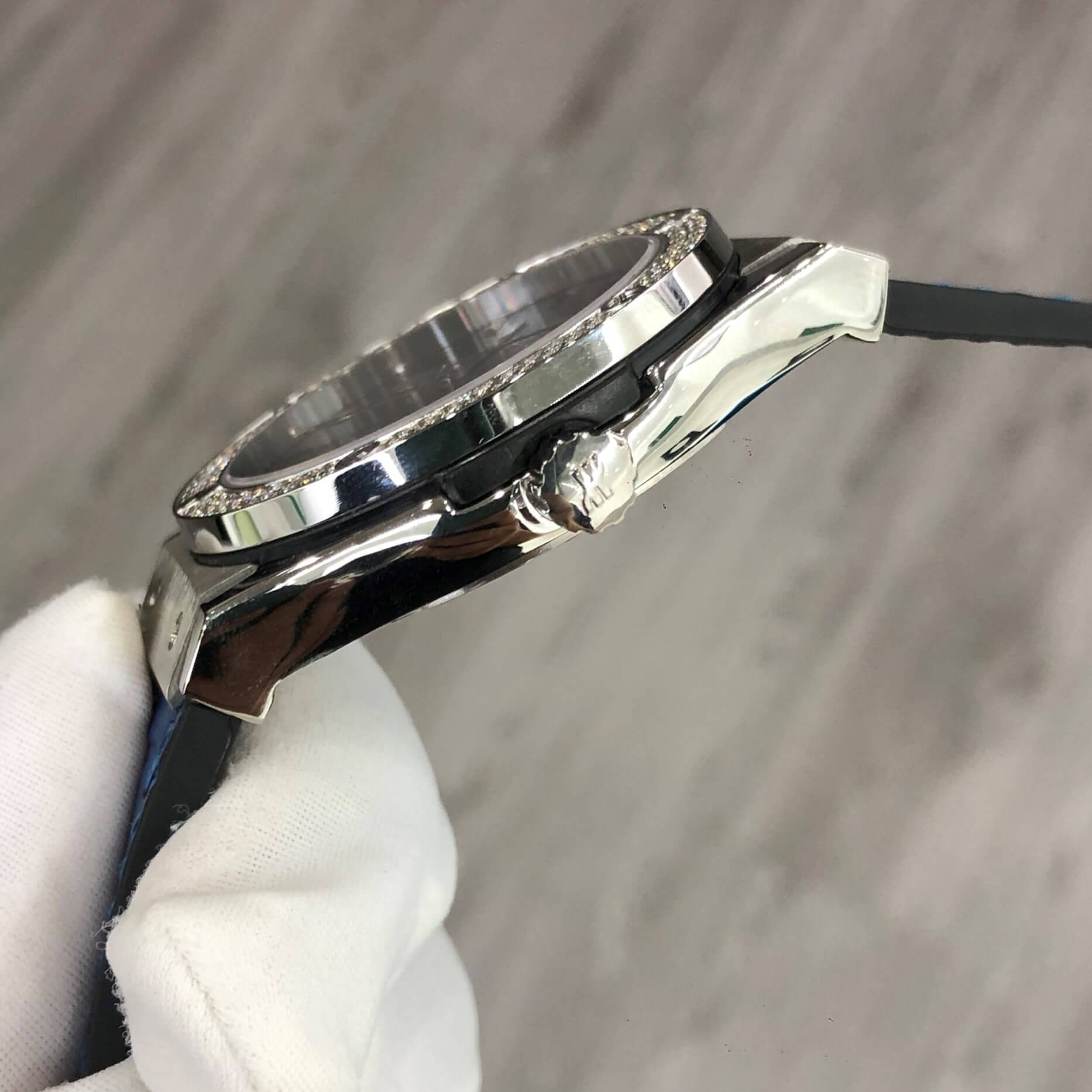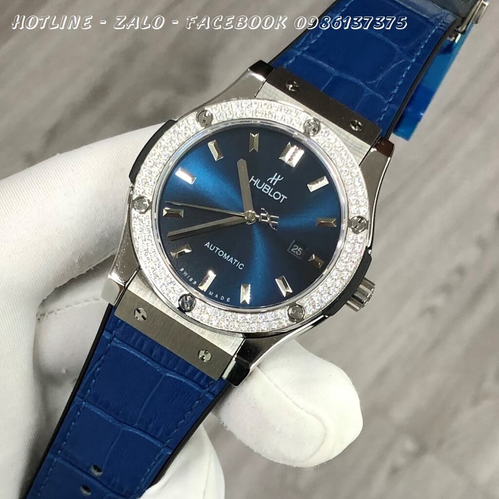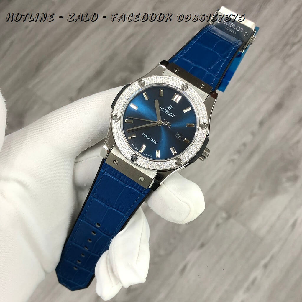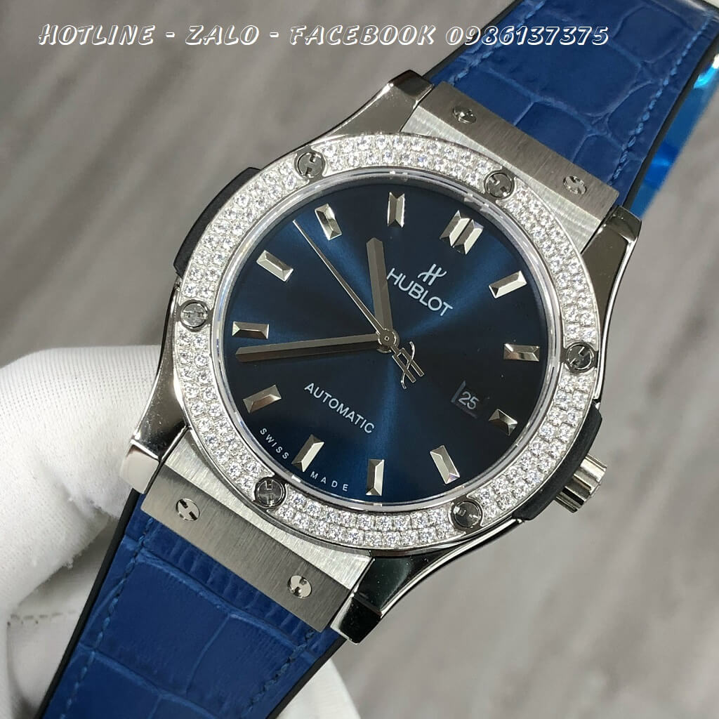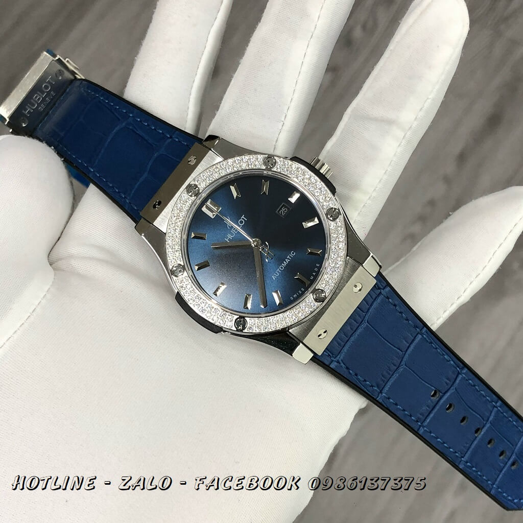 Đồng Hồ Nam Hublot Automatic Da Silicon Xanh Đính Đá Silver 42mm
