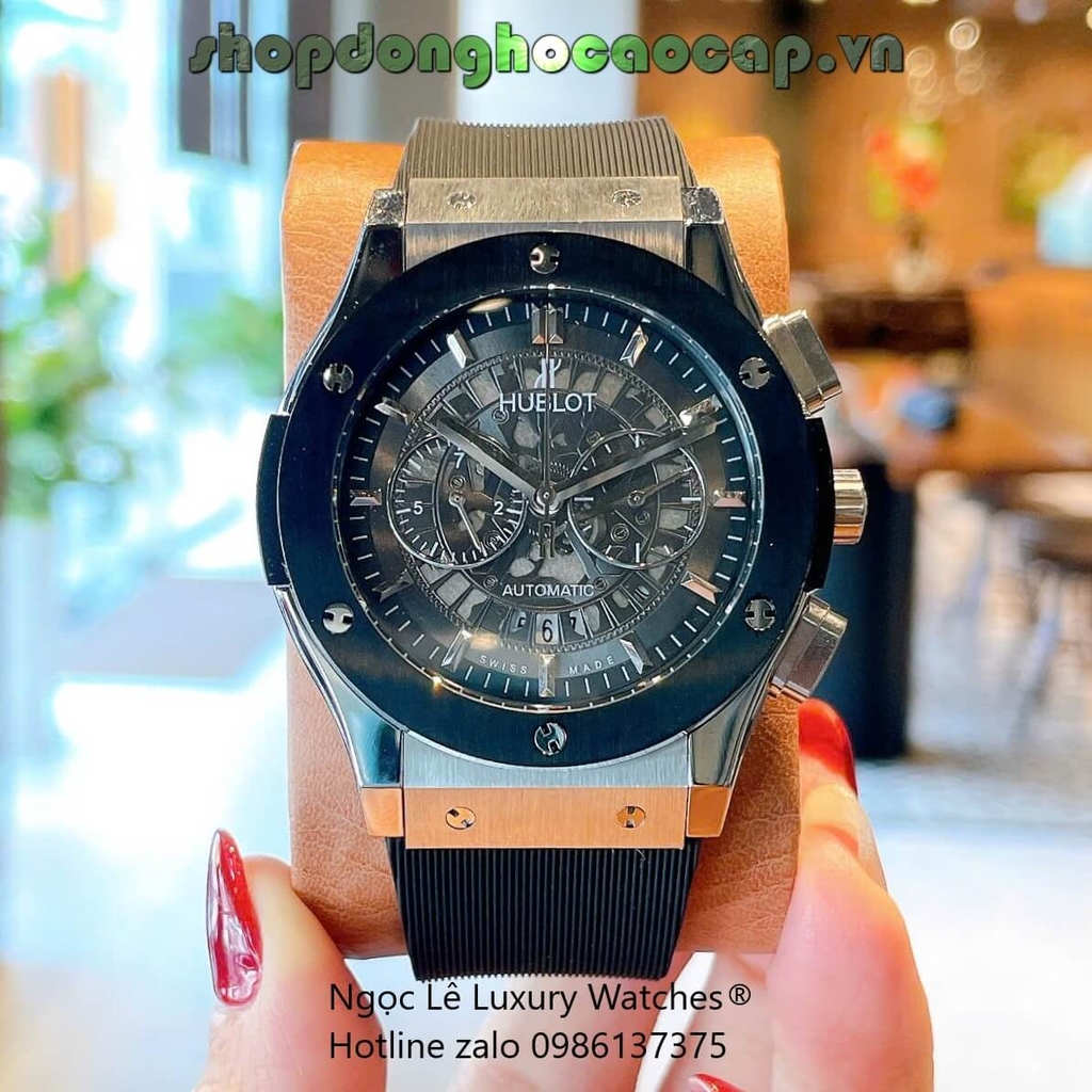 Đồng Hồ Nam Hublot Classic Fusion Automatic Dây Cao Su Đen Viền Thép Đen 42mm Cao Cấp