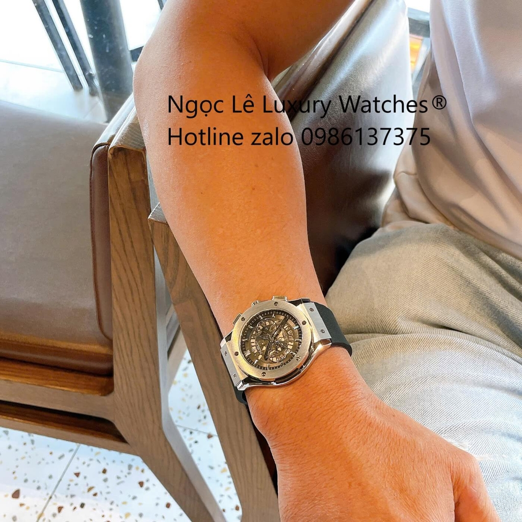 Mẫu Hublot Classic Fusion 42mm nổi bật với thiết kế tối giản đặc trưng, kết hợp dây cao su thể thao cùng mặt lộ cơ tinh xảo.