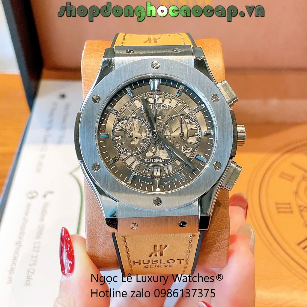 Đồng Hồ Nam Hublot Classic Fusion Automatic Dây Da Nâu Vỏ Thép Silver 42mm Cao Cấp