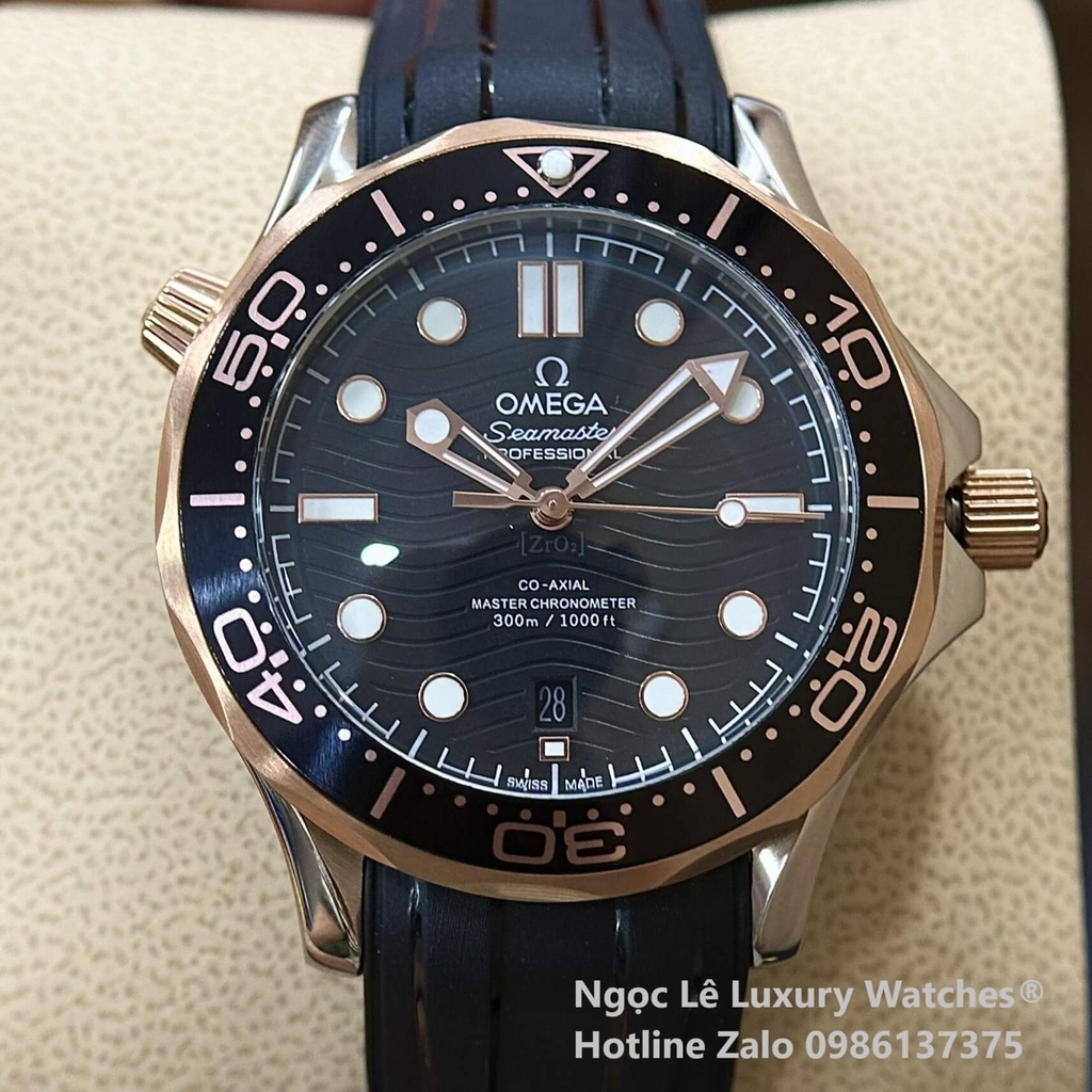 Hình Ảnh thực tế Đồng Hồ Nam Omega Seamaster Diver Automatic Dây Cao Su Đen Size 41mm - Vỏ Demi Rose Mặt Đen