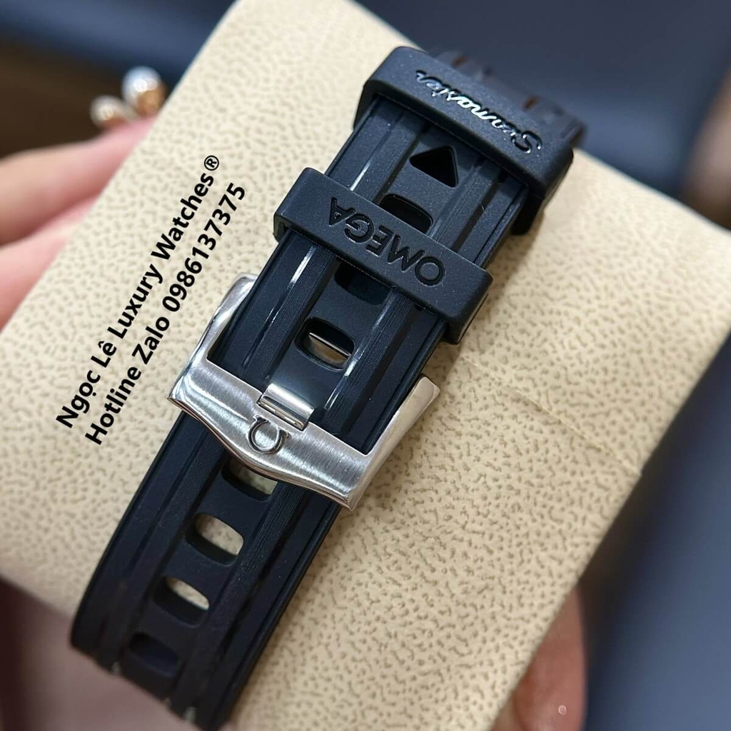 - Đồng hồ Omega máy cơ tự động Japan cao cấp, dây cao su fom dáng ôm tay, có ô lịch ngày tiện lợi