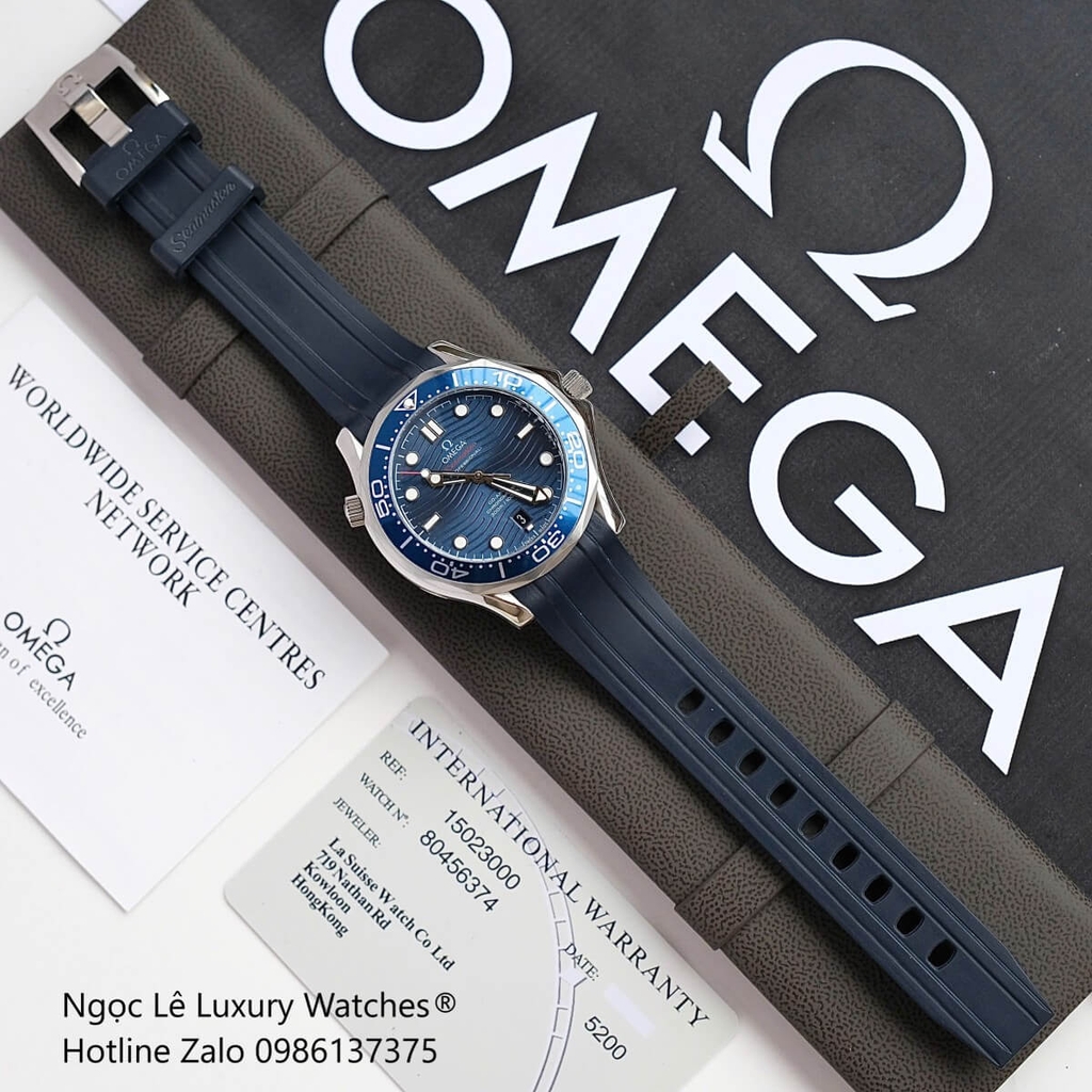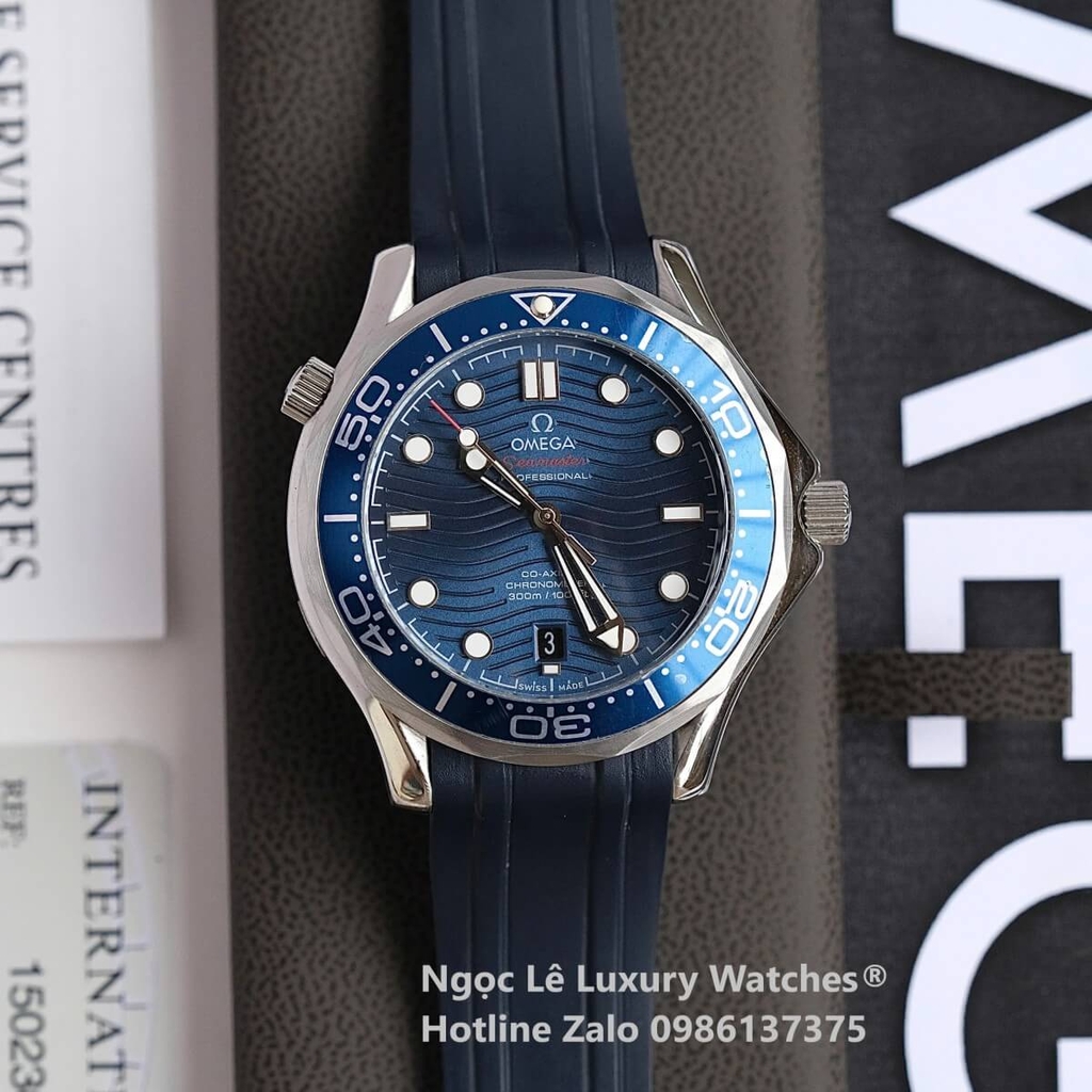 - Đồng hồ Omega Seamaster Diver Automatic dây cao su siêu cấp, mặt đồng hồ màu xanh cùng tone dây