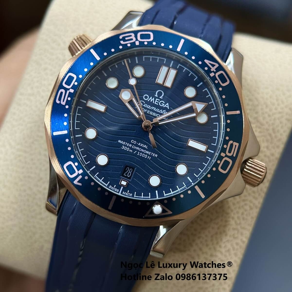 Đồng Hồ Nam Omega Seamaster Diver Automatic Dây Cao Su Xanh Size 41mm – Vỏ Demi Rose Mặt Xanh