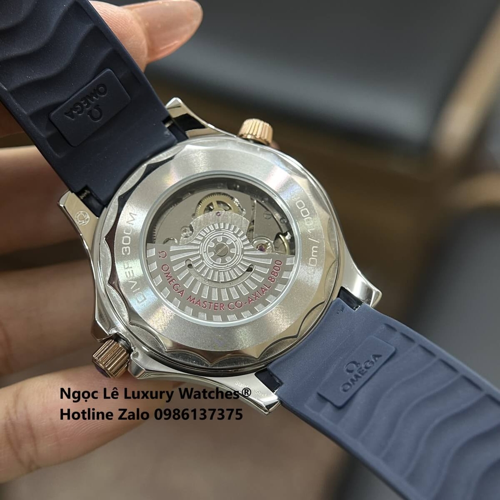 Hình Ảnh thực tế Đồng Hồ Nam Omega Seamaster Diver Automatic Dây Cao Su Xanh Size 41mm - Vỏ Demi Rose Mặt Xanh