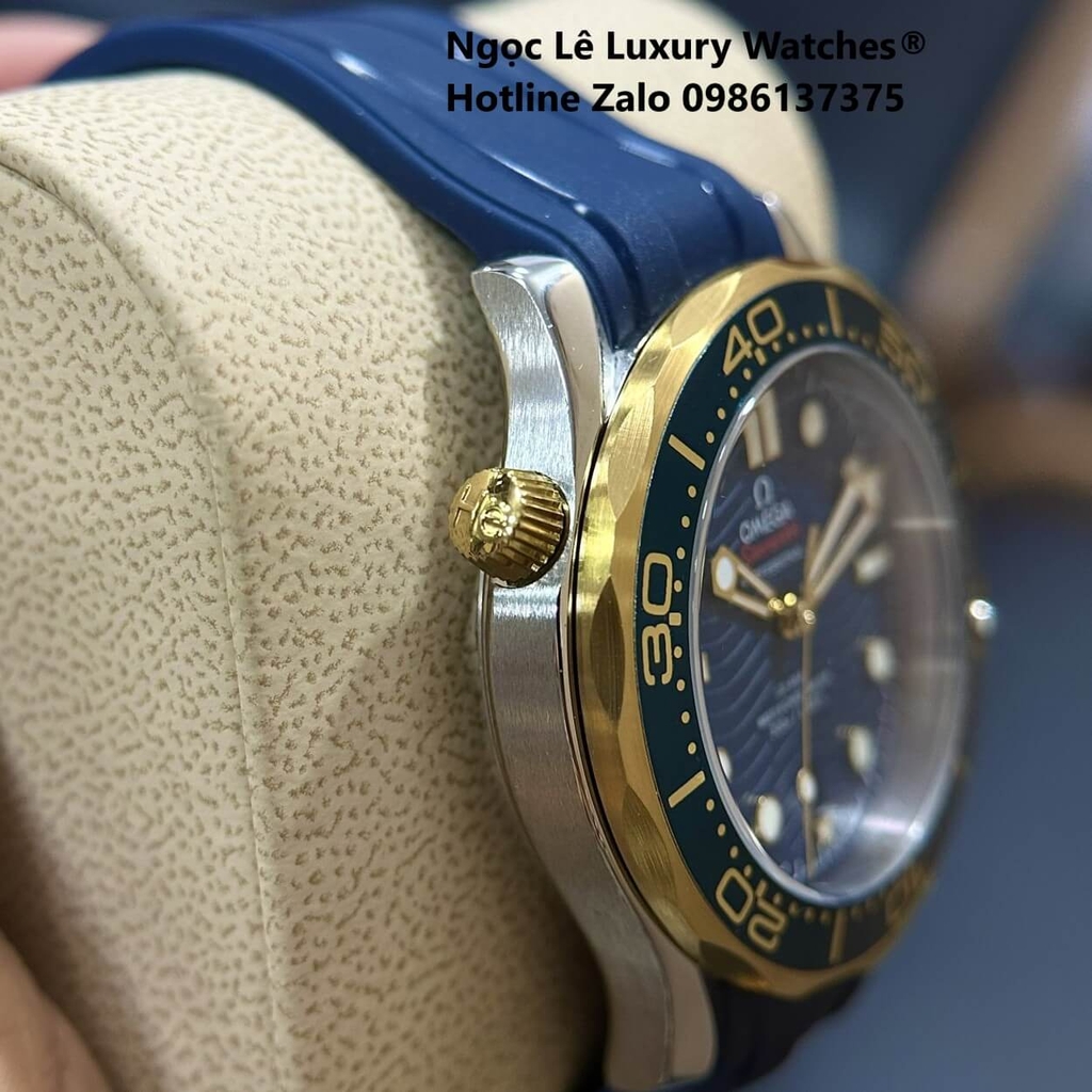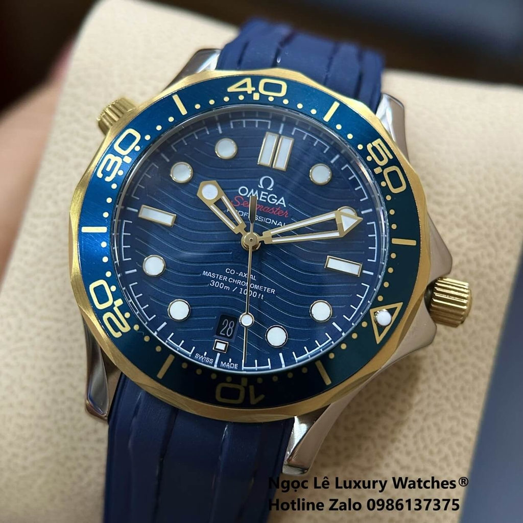 Đồng Hồ Nam Omega Seamaster Diver Automatic Dây Cao Su Xanh Size 41mm – Vỏ Demi Vàng Mặt Xanh