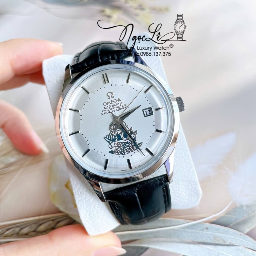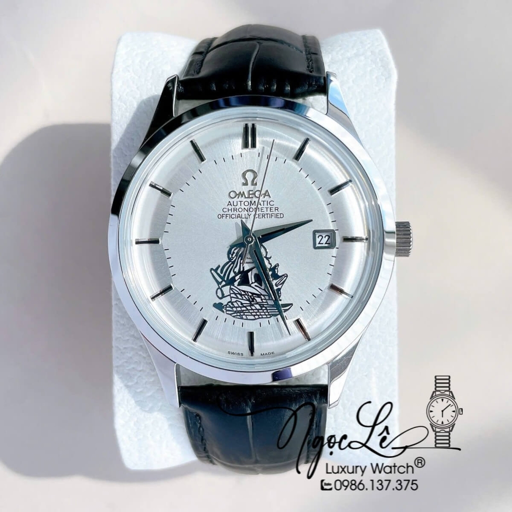 Hình Ảnh Đồng Hồ Nam Omega Thuyền Buồm Máy Cơ Tự Động Dây Da Đen Mặt Trắng Silver Size 40mm