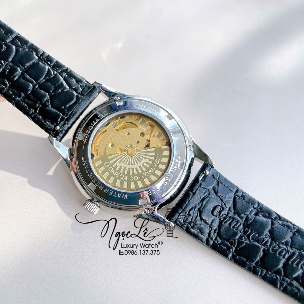 Đồng Hồ Nam Omega Thuyền Buồm Máy Cơ Tự Động Dây Da Đen Mặt Trắng Silver Size 40mm
