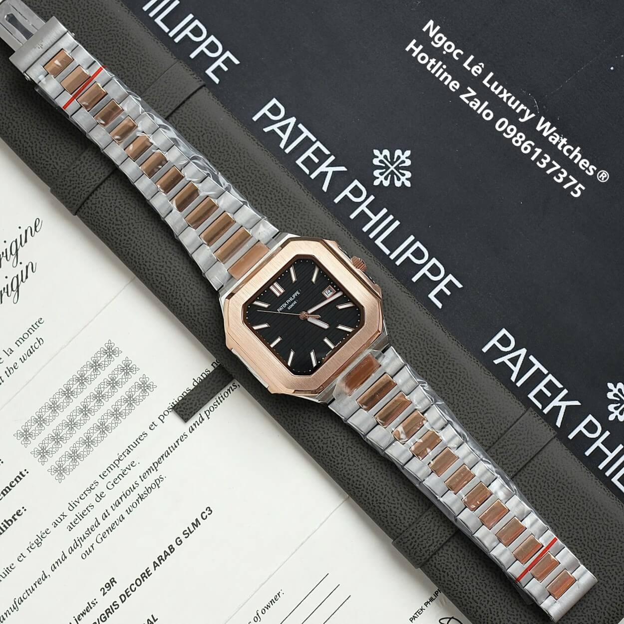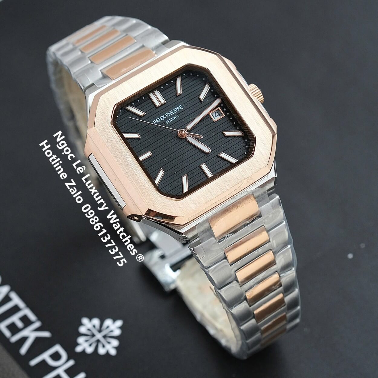 Đồng hồ Patek Philippe nam máy cơ tự động mặt vuông, đồng hồ Patek tự động cao cấp