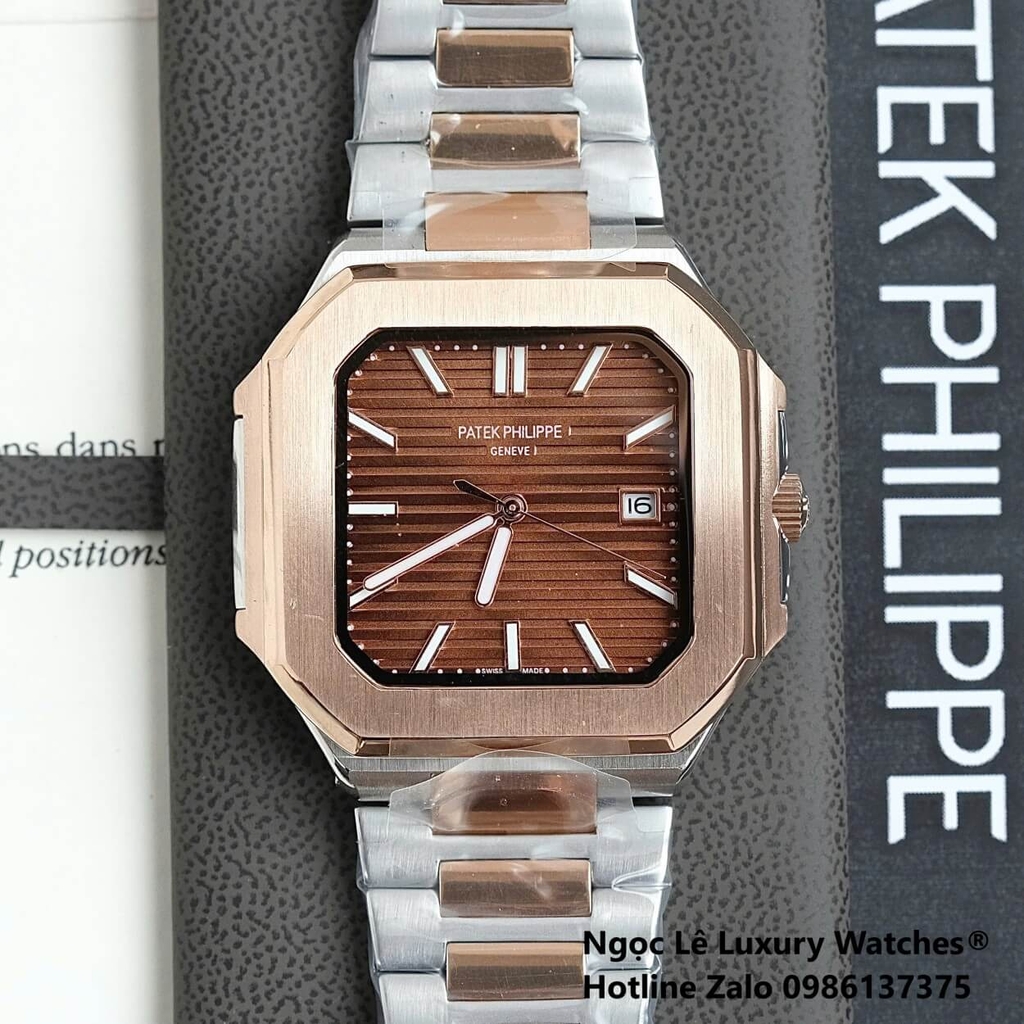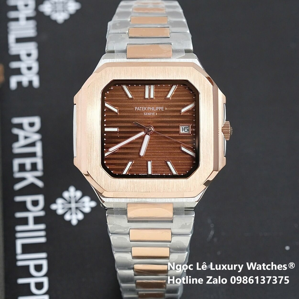 Đồng Hồ Nam Patek Philippe Cubitus Automatic Dây Demi Vàng Hồng Mặt Nâu Size 40mm
