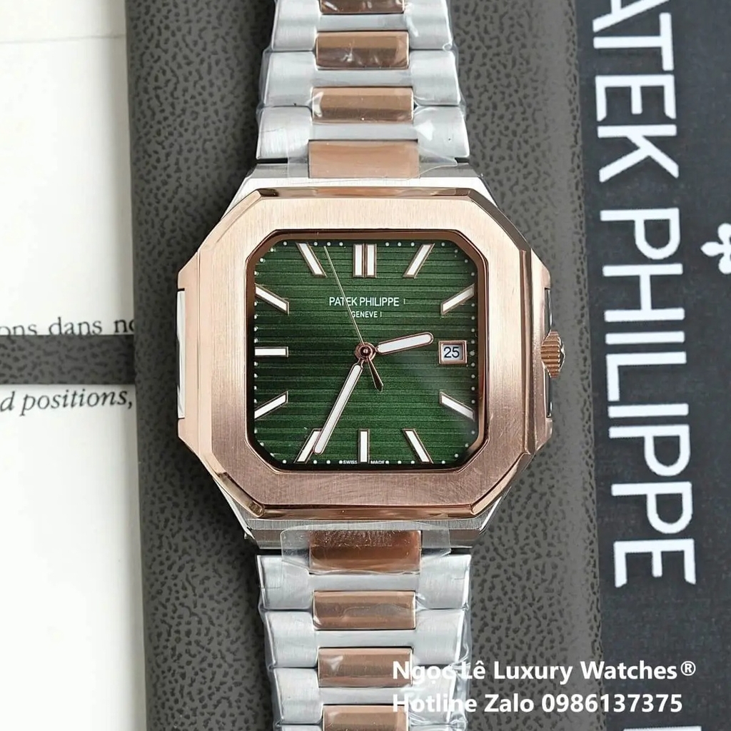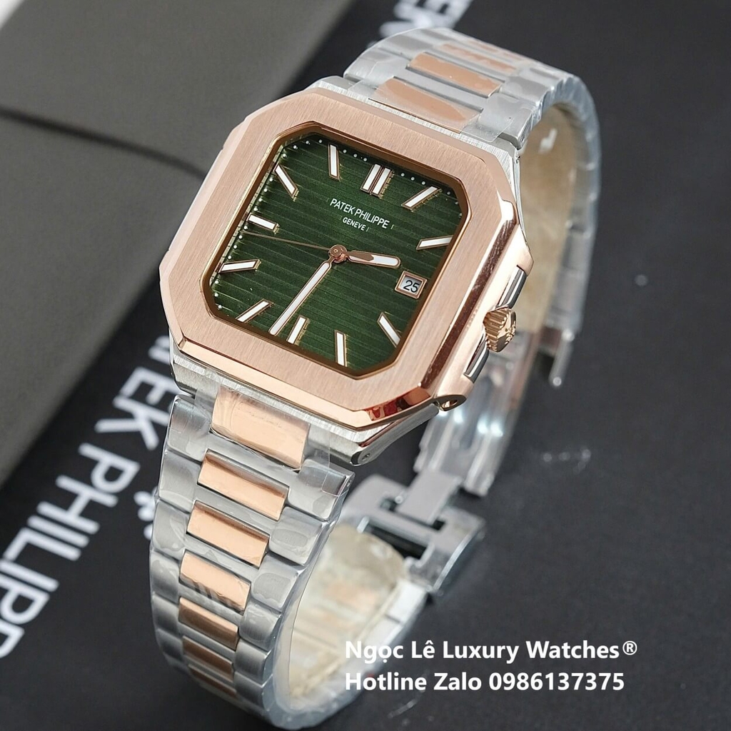 Đồng Hồ Nam Patek Philippe Cubitus Automatic Dây Demi Vàng Hồng Mặt Xanh Lá Size 40mm