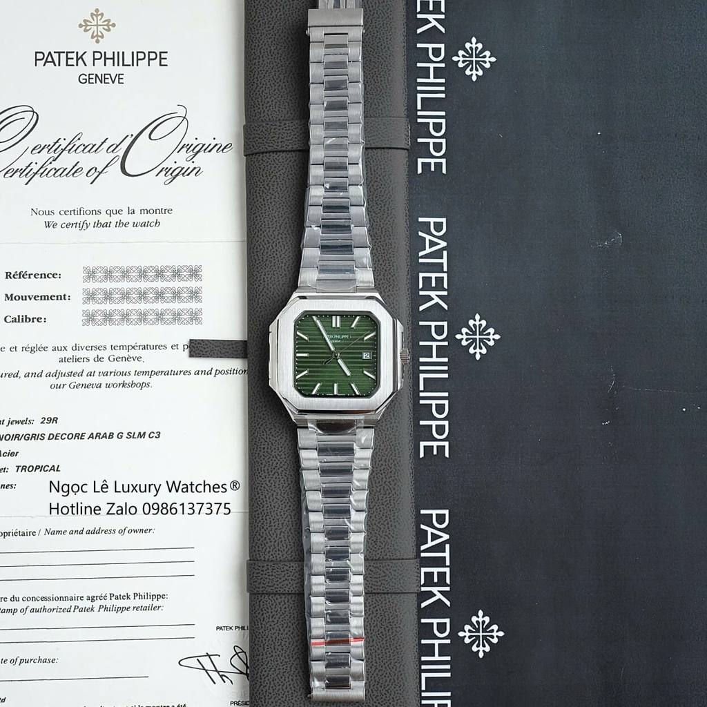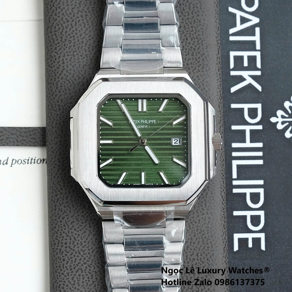 Đồng Hồ Nam Patek Philippe Cubitus Automatic Dây Thép Silver Mặt Xanh Lá Size 40mm