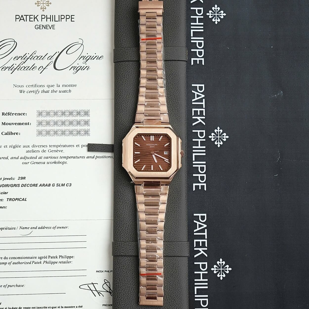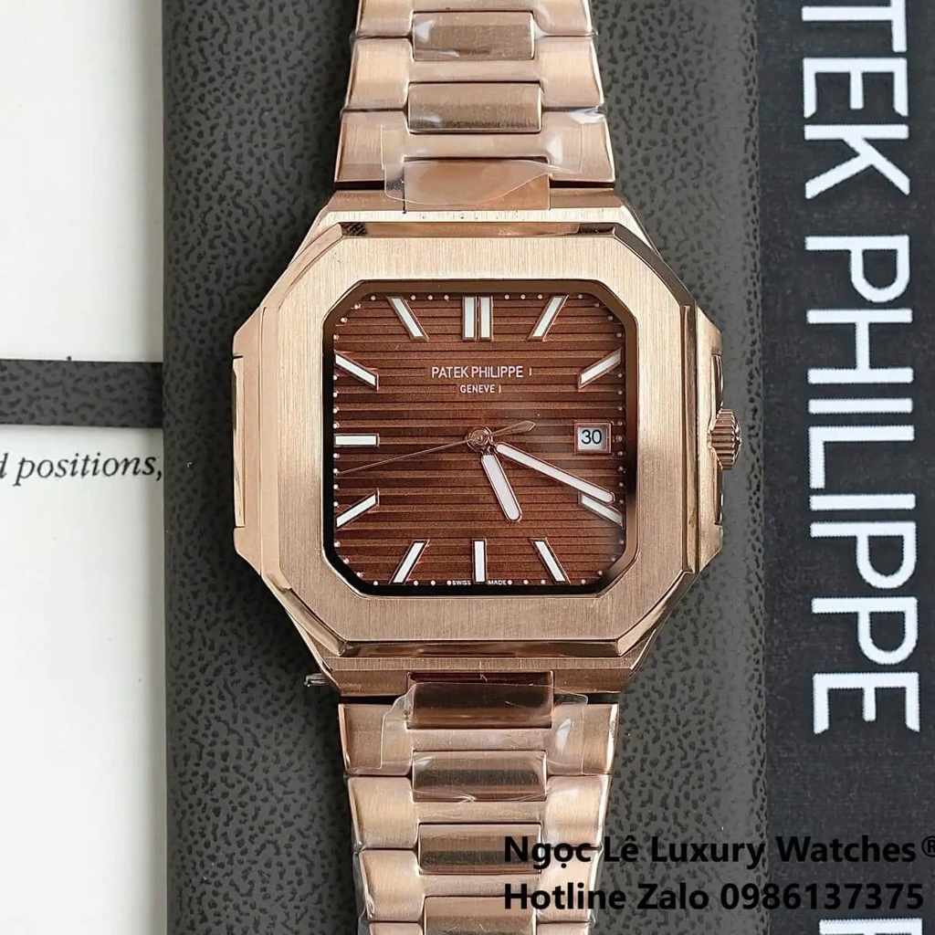 Đồng Hồ Nam Patek Philippe Cubitus Automatic Vàng Hồng Mặt Nâu Size 40mm