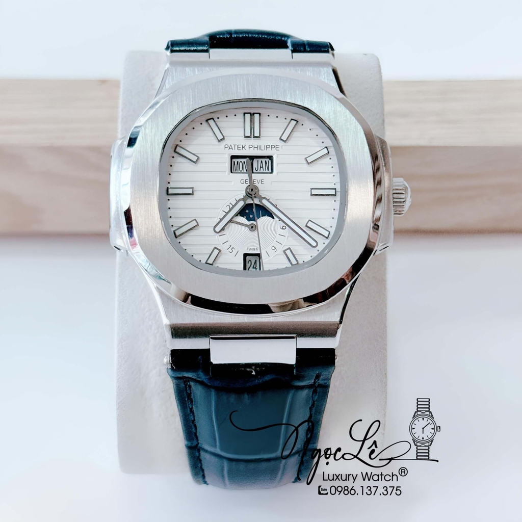 Đồng Hồ Nam Patek Philippe Nautilus Tự Động Dây Da Xanh Dương Vỏ Silver Size 40mm