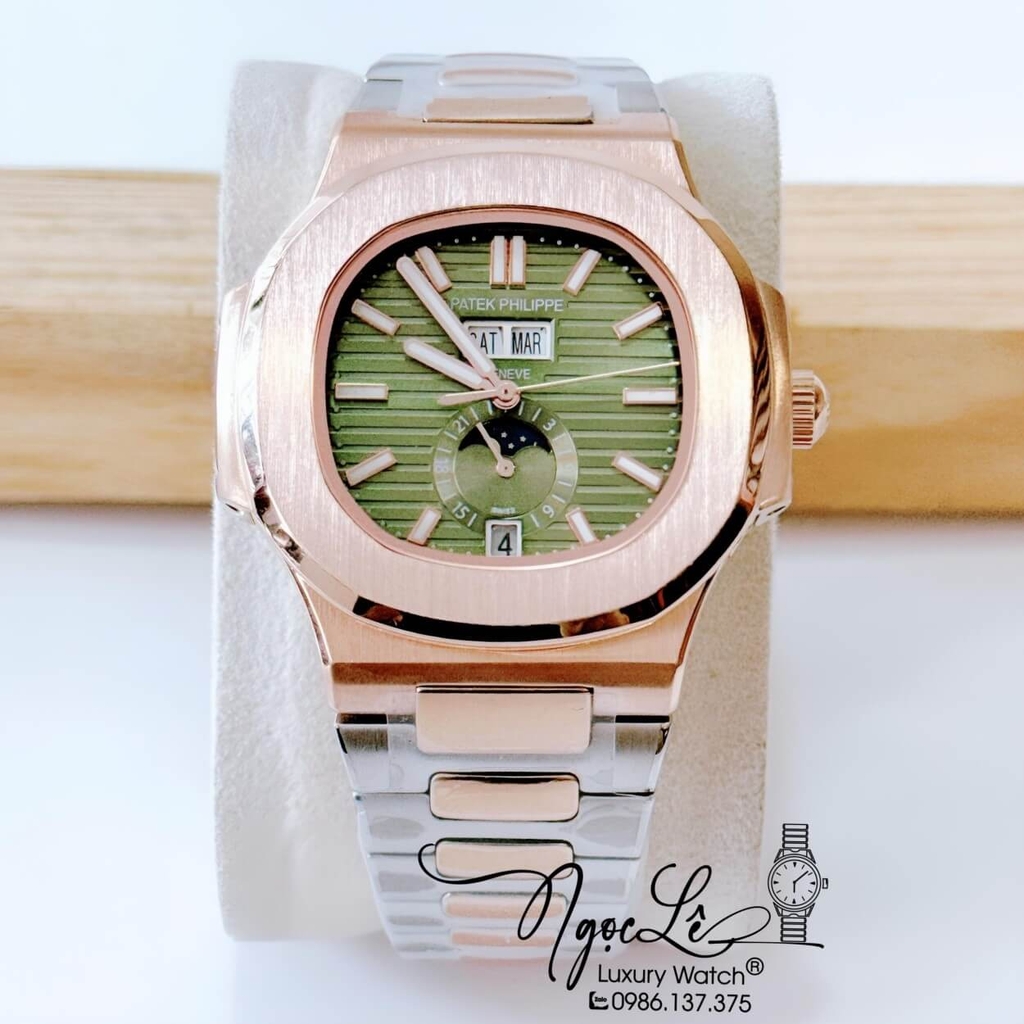 Hình ảnh thực tế đồng hồ Patek Philippe nam máy cơ tự động siêu cấp - Đồng Hồ Nam Patek Philippe Nautilus Tự Động Dây Kim Loại Demi Rose Mặt Xanh Rêu Size 40mm