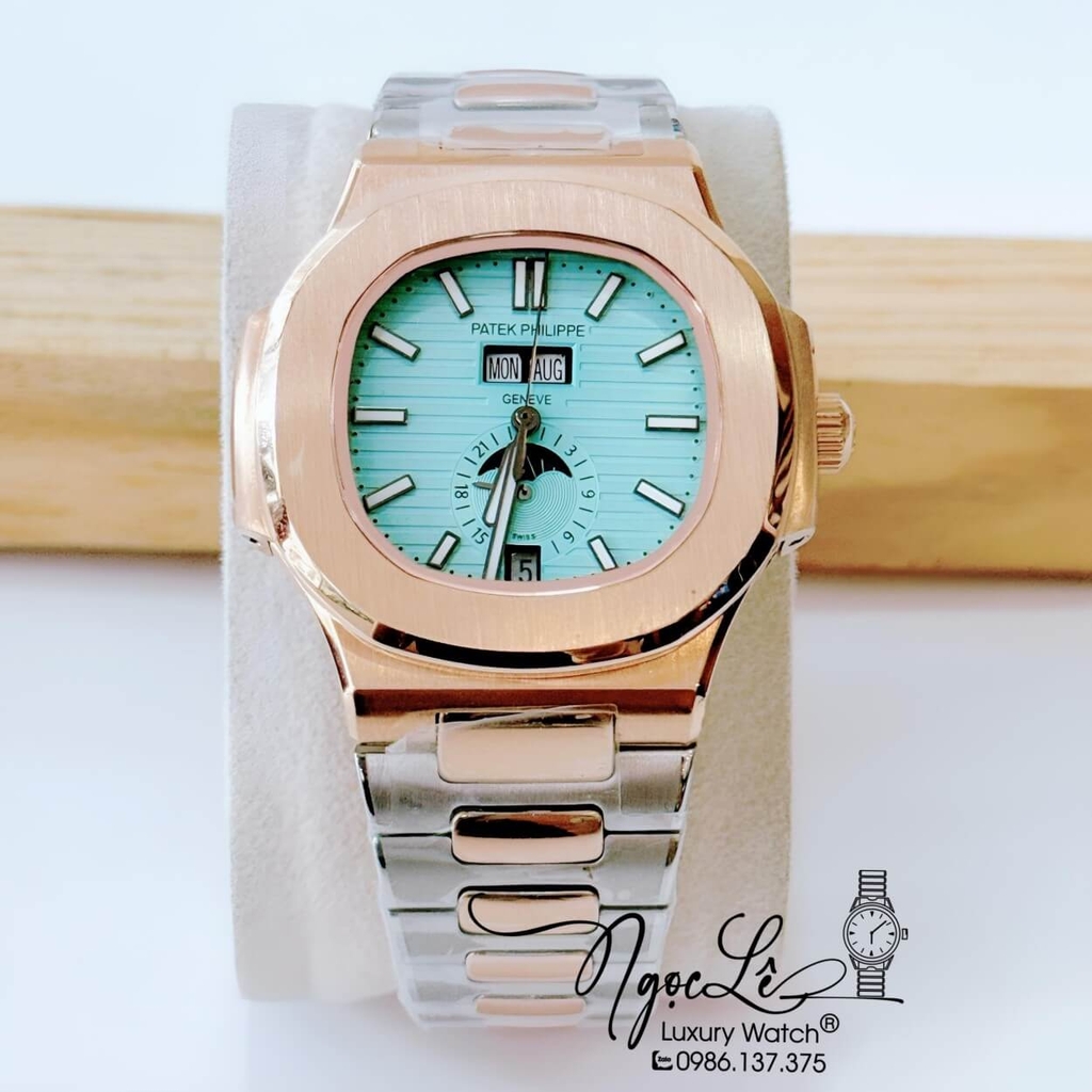 Hình ảnh thực tế đồng hồ Patek Philippe nam máy cơ tự động siêu cấp - Đồng Hồ Nam Patek Philippe Nautilus Tự Động Dây Kim Loại Demi Rose Mặt Xanh Size 40mm