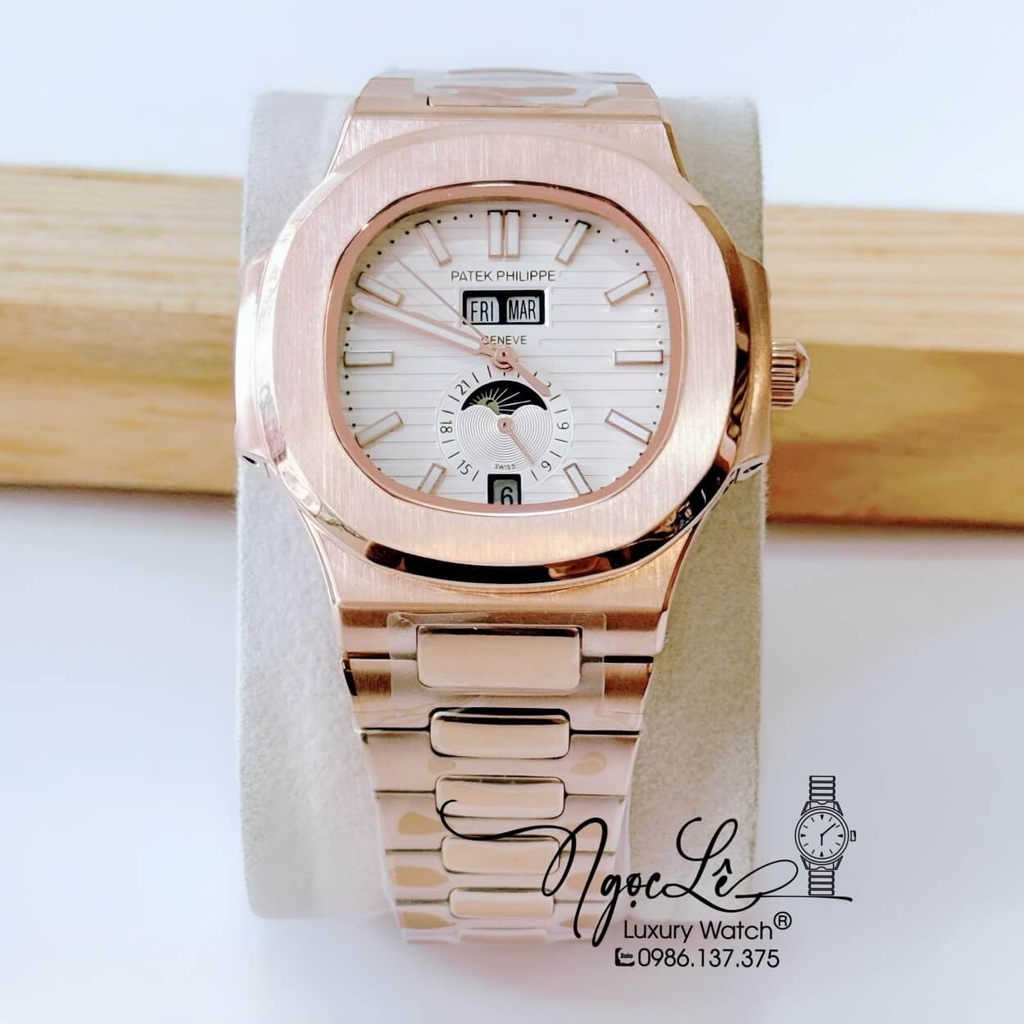 Hình ảnh thực tế đồng hồ Patek Philippe nam máy cơ tự động siêu cấp - Đồng Hồ Nam Patek Philippe Nautilus Tự Động Dây Kim Loại Rose Mặt Trắng Size 40mm