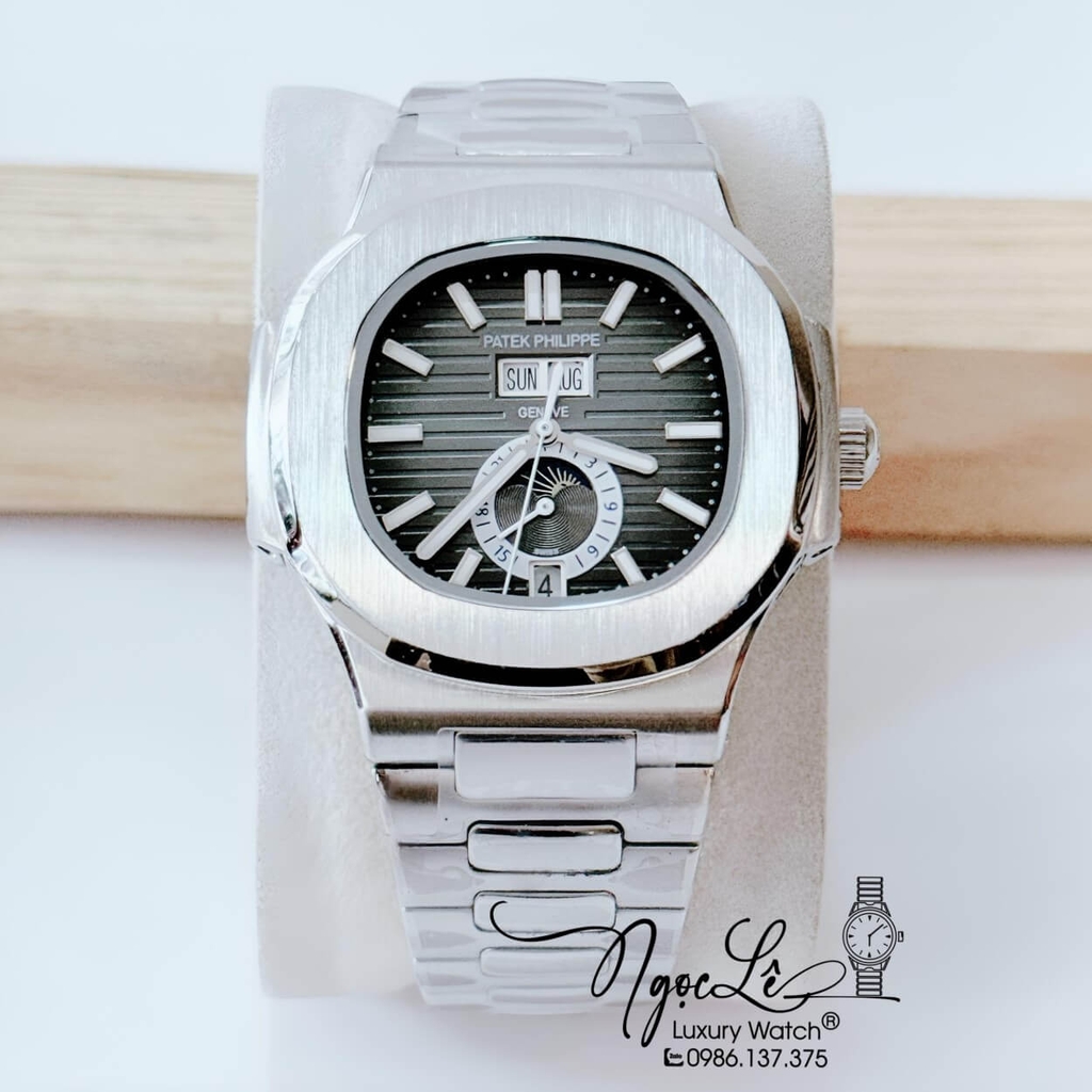 Hình ảnh thực tế đồng hồ Patek Philippe nam máy cơ tự động siêu cấp - Đồng Hồ Nam Patek Philippe Nautilus Tự Động Dây Kim Loại Silver Mặt Đen Xám Size 40mm