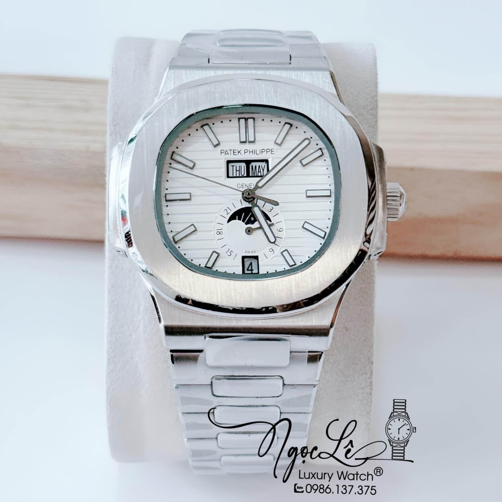 Đồng Hồ Nam Patek Philippe Nautilus Tự Động Dây Kim Loại Silver Mặt Trắng Size 40mm